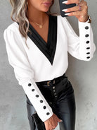 Autumn Fashion V-neck Solid Color Long Sleeve Button-up Shirt