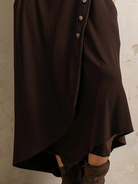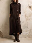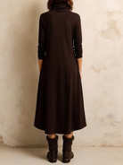 Dark Brown Bohemian Turtleneck Side Button Placket Midi Dress