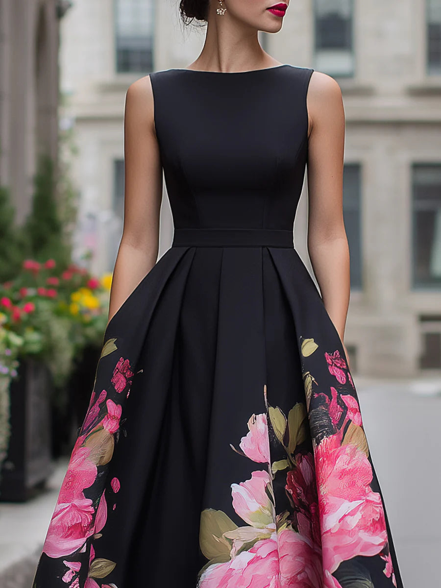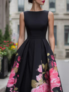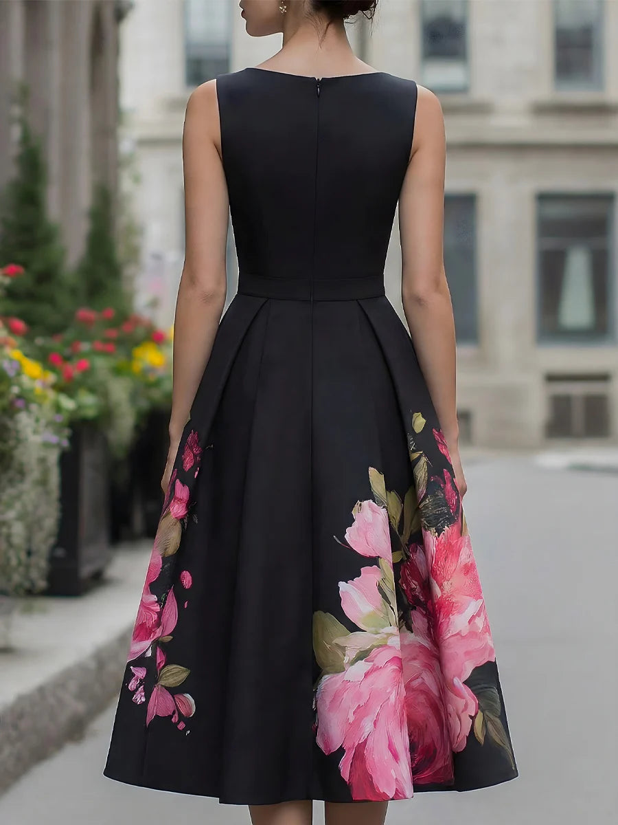 Elegant Sleeveless Midi Dress With Floral Printed