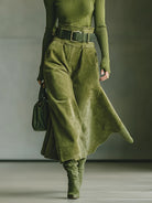 Olive green off-shoulder top and faux suede skirt set(Includes belt)