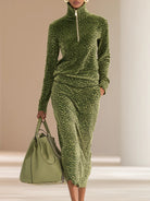 Retro Leopard Print Stand Collar Velvet Top + Skirt Set