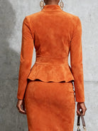 Simple suede stand-up collar top and skirt set