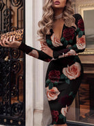 Autumn/Winter Sexy Long-Sleeved V-Neck Bodycon Printed Dress