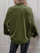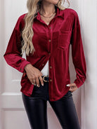 Classic Velvet Collared Button-down Long-sleeved Shirt