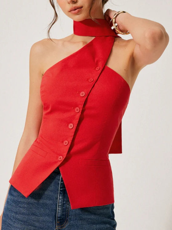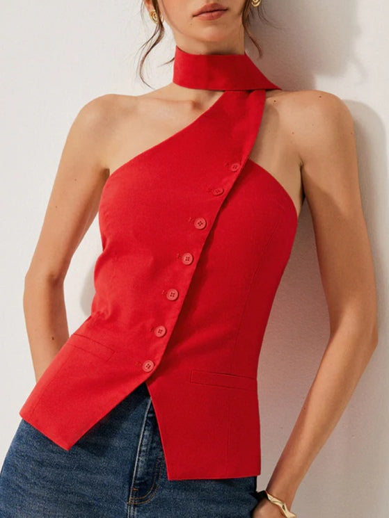 Irregular halterneck button vest