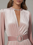 Elegant Light Pink V-Neck Velvet Maxi Dress