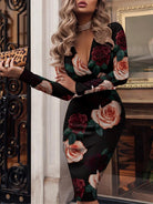 Elegant Leopard Print Sequined V-neck Pencil Skirt Midi Dress