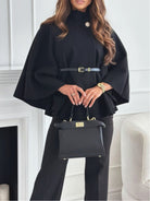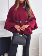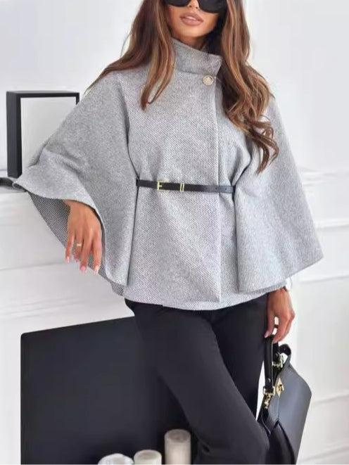 Women's solid color belted wool blend cape coat