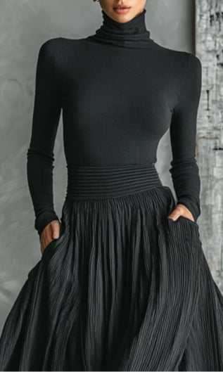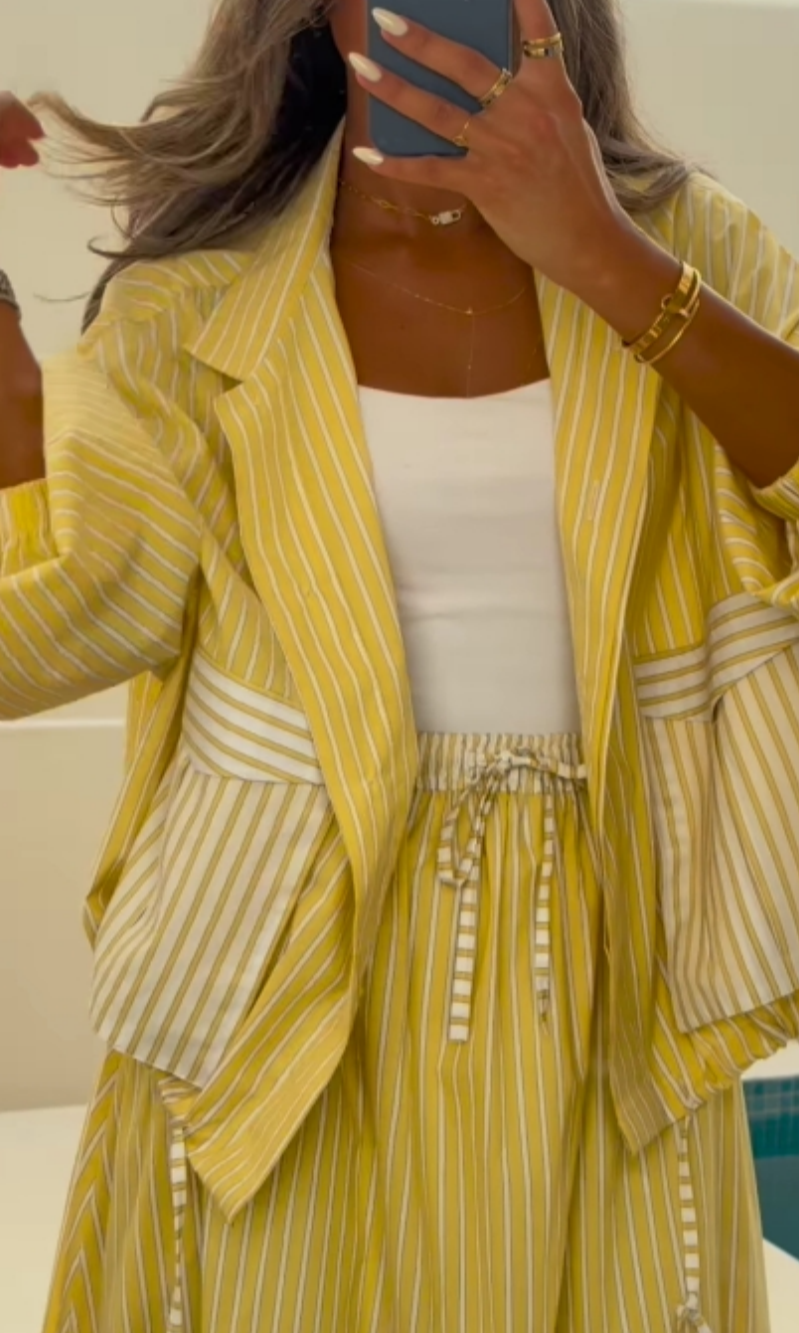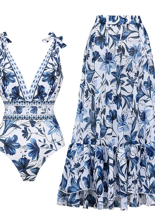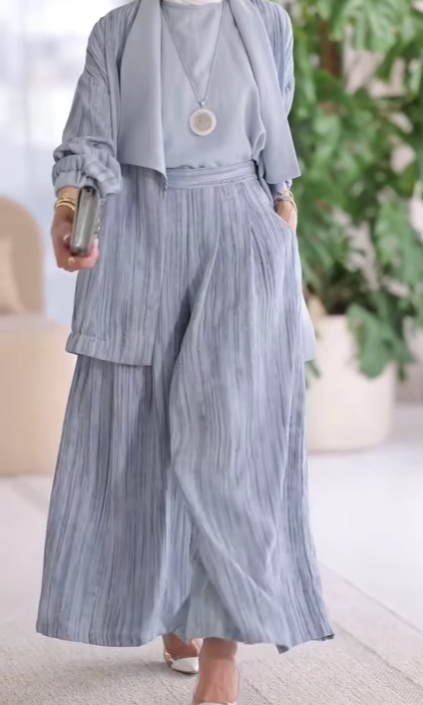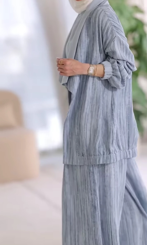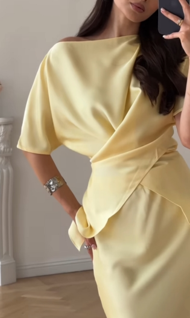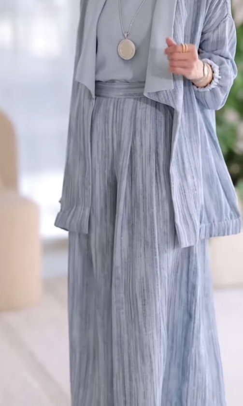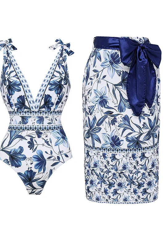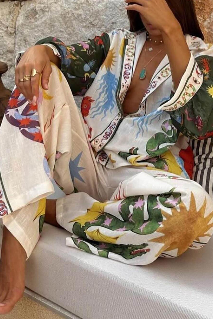 Long-sleeved Tie-Drawstring Shirt and Skirt Set