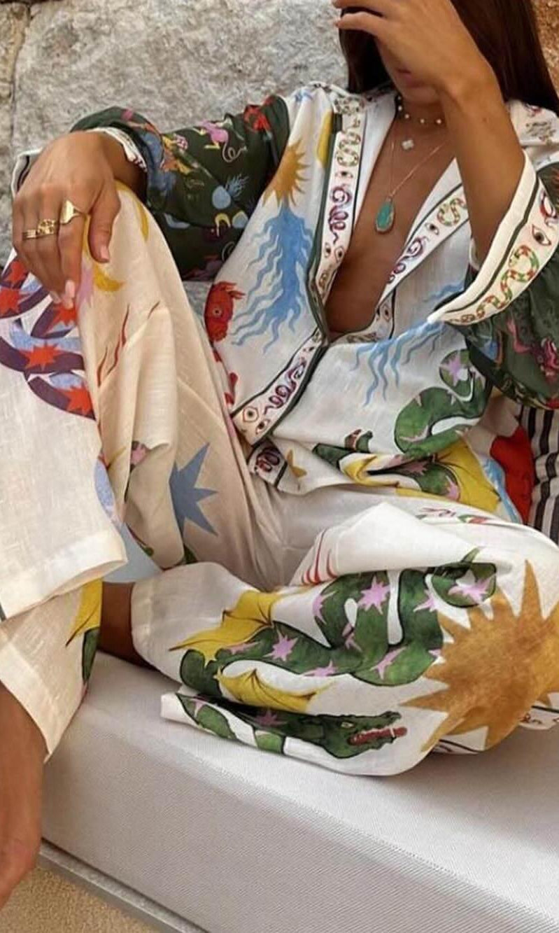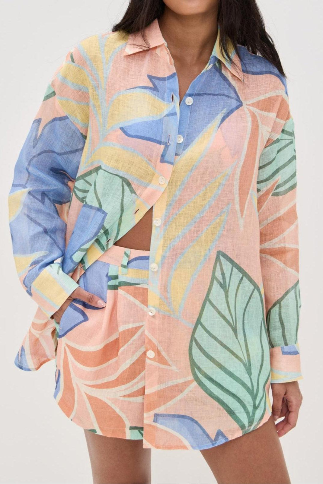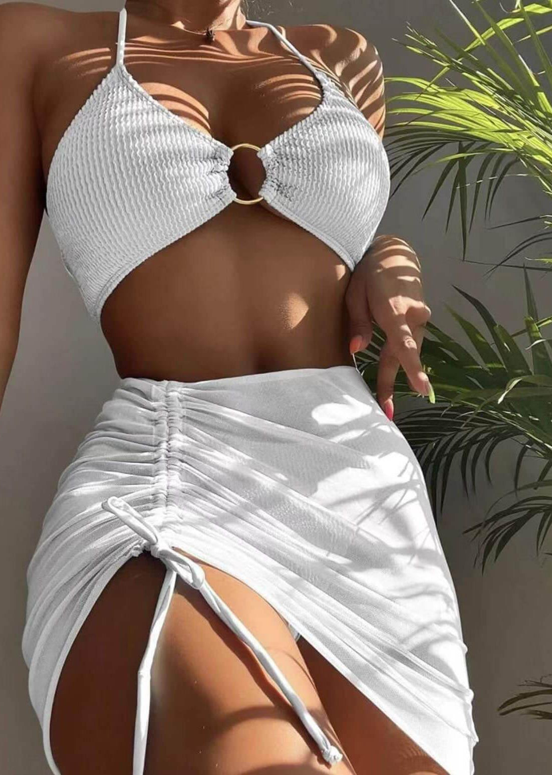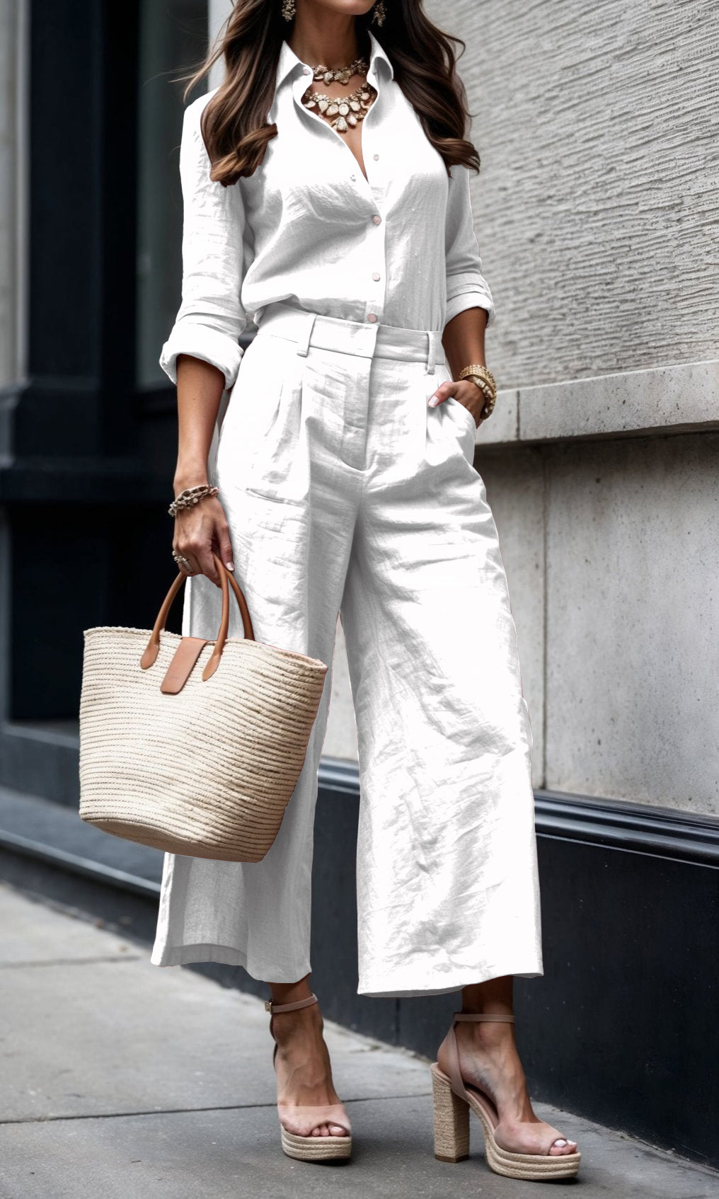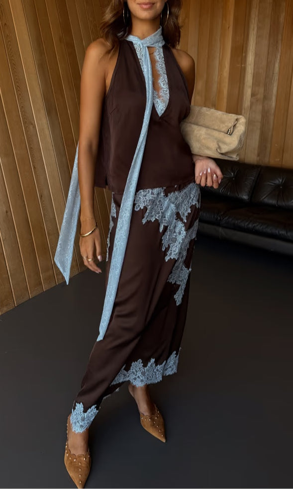 Long-sleeved Tie-Drawstring Shirt and Skirt Set
