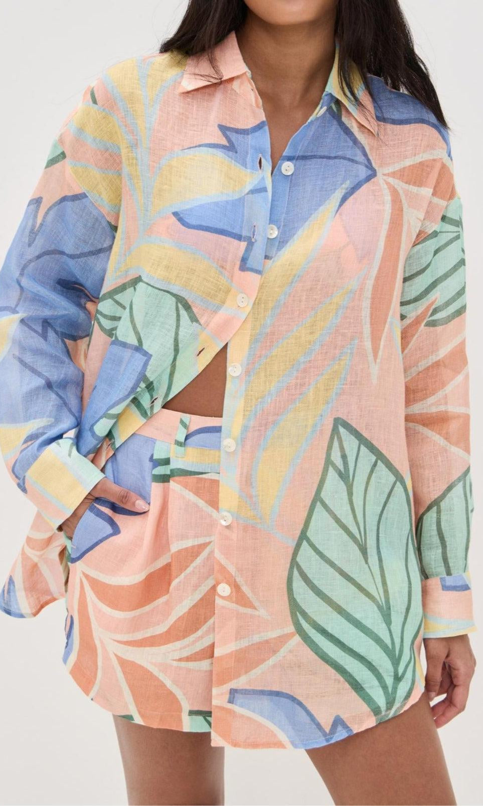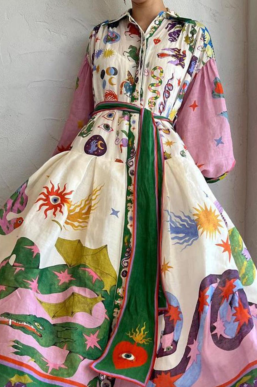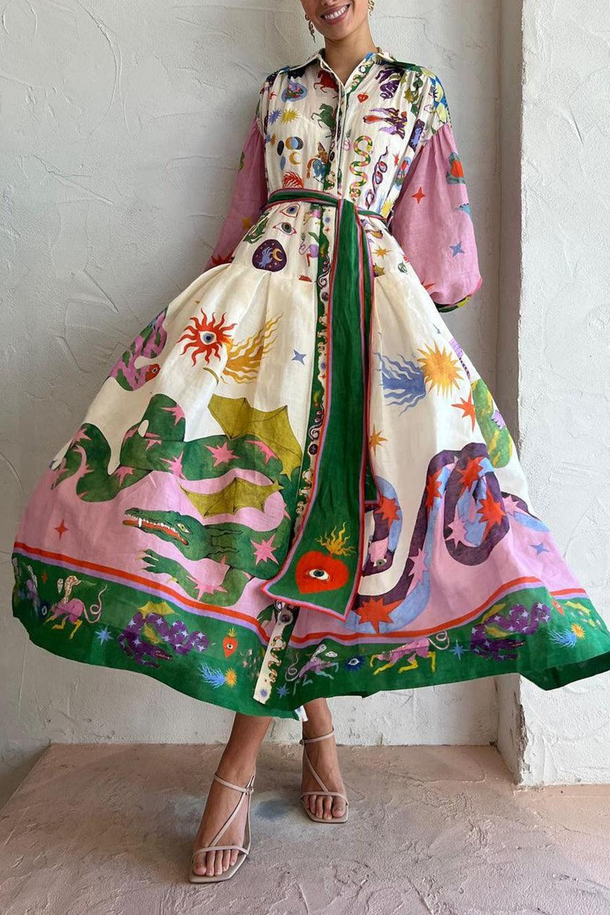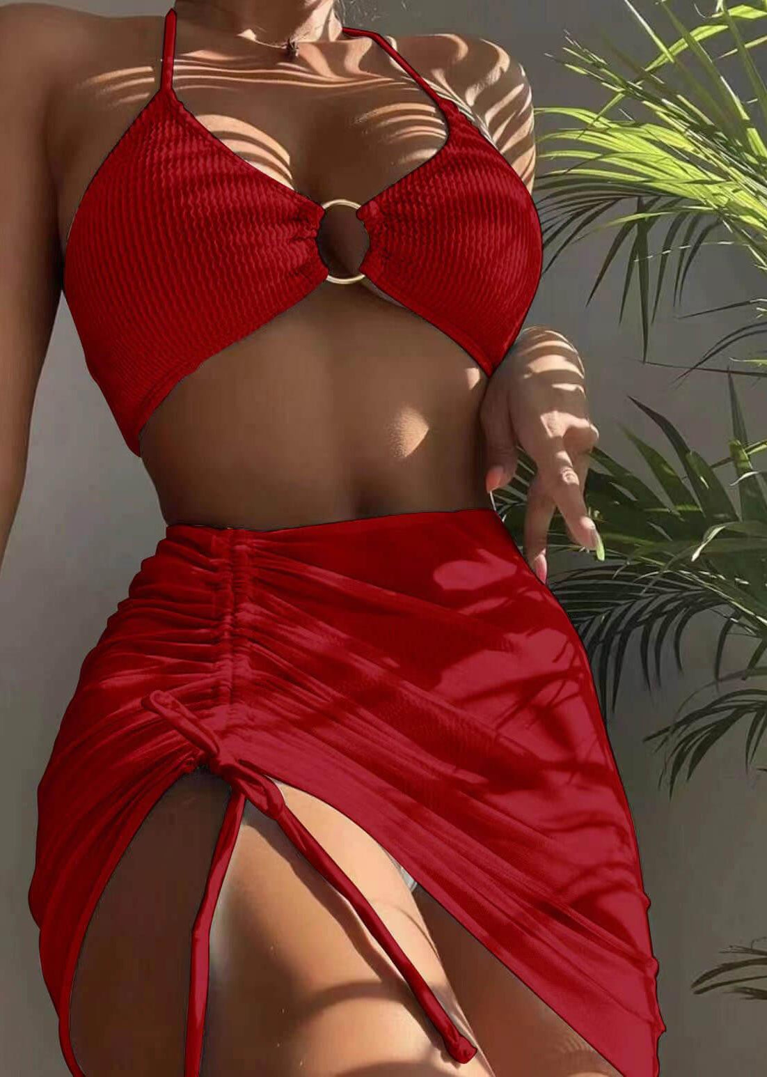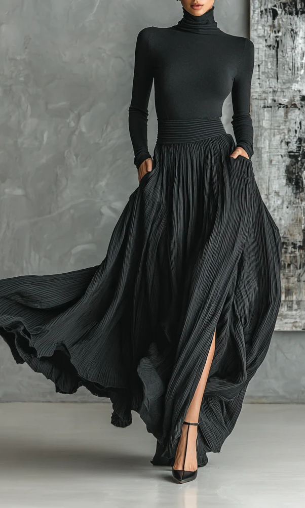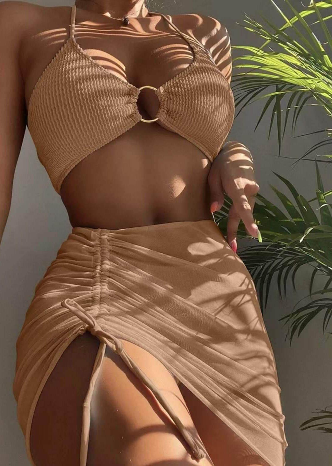 Long-sleeved Tie-Drawstring Shirt and Skirt Set