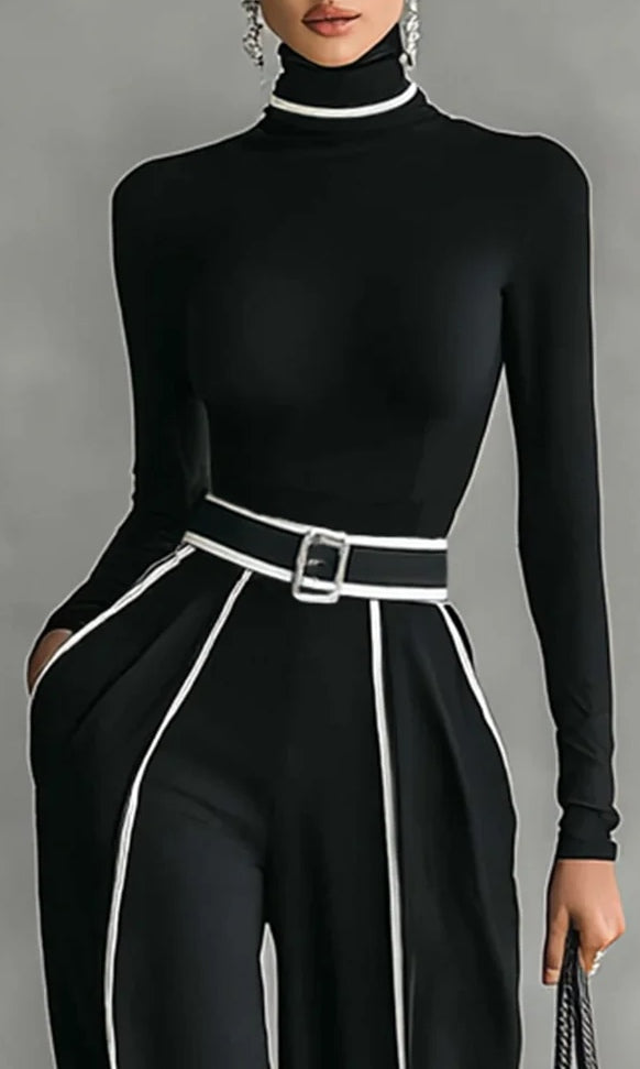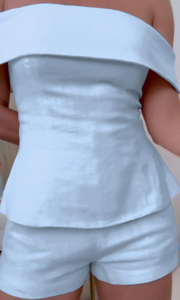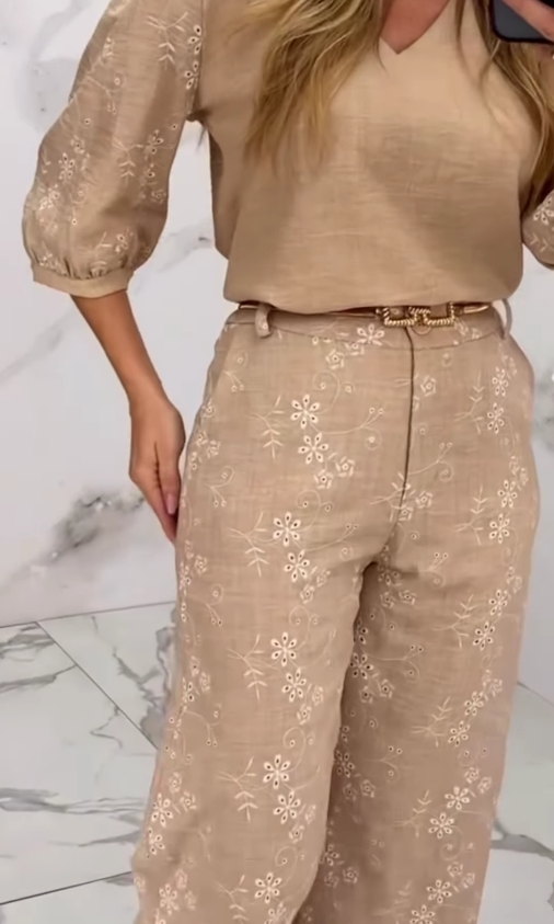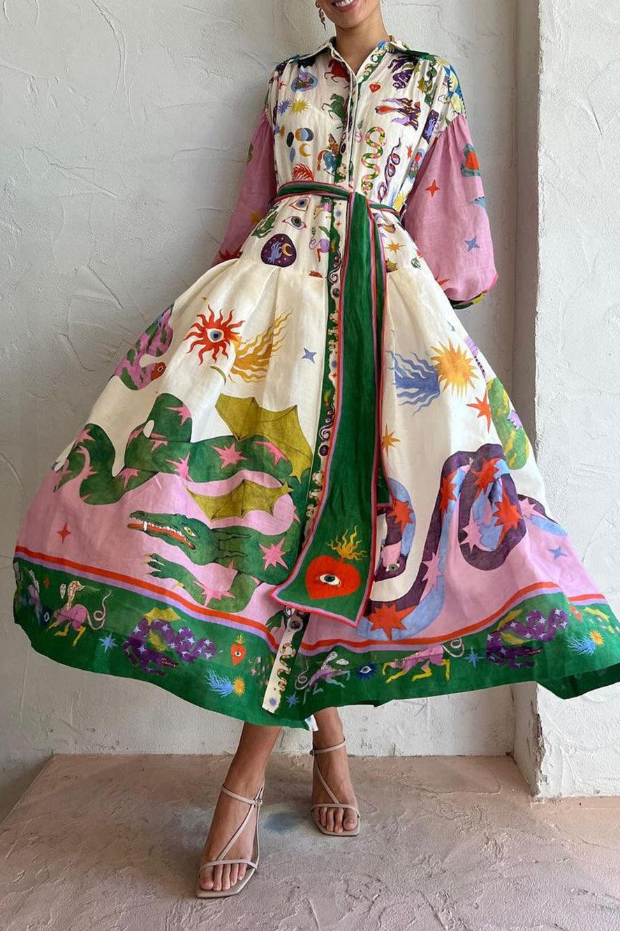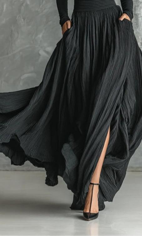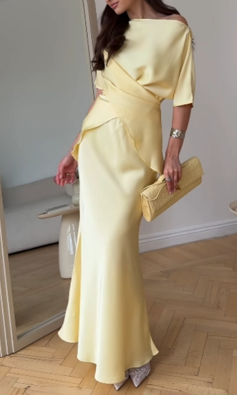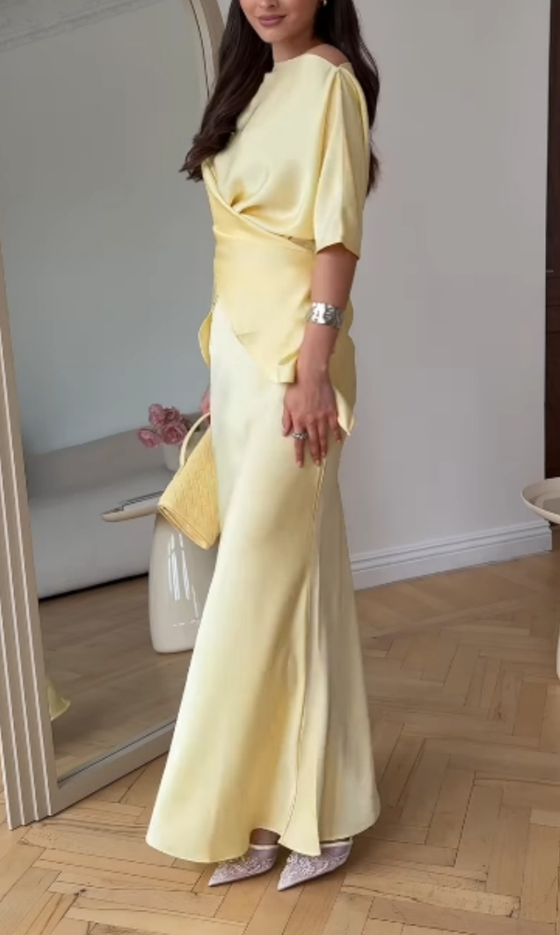 Long-sleeved Tie-Drawstring Shirt and Skirt Set
