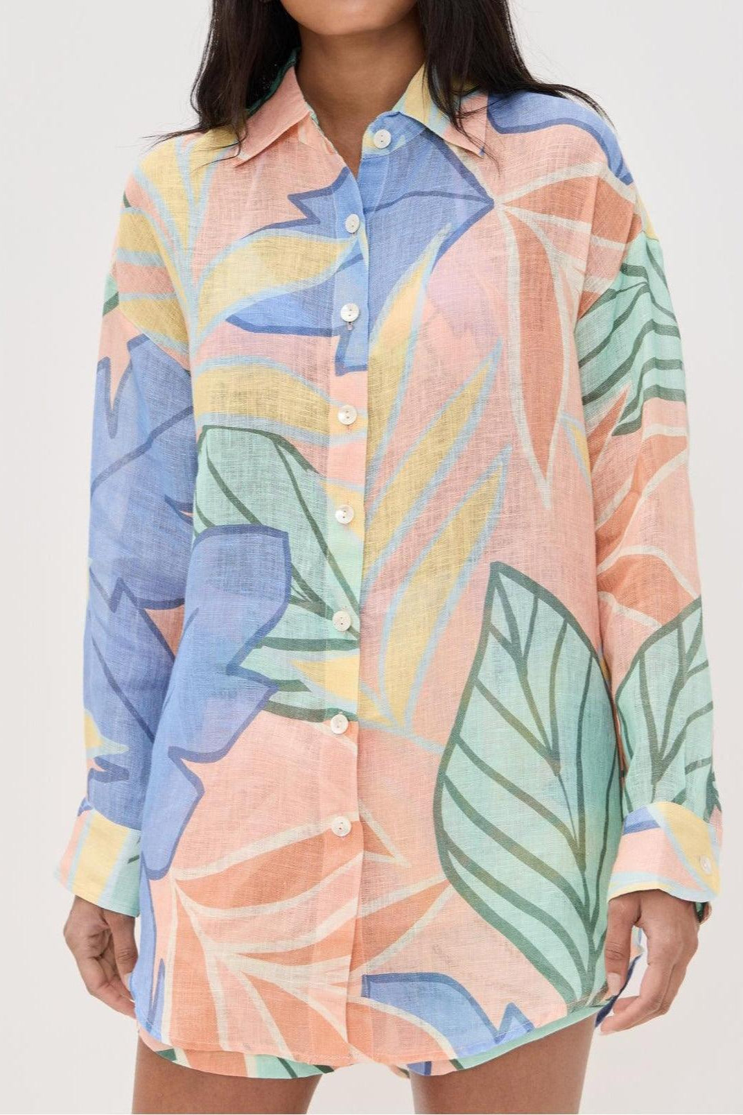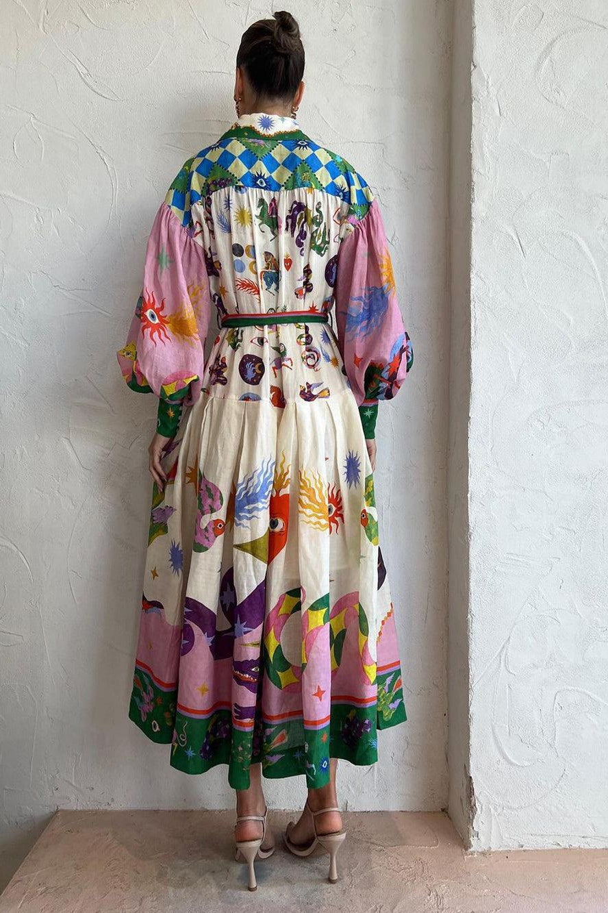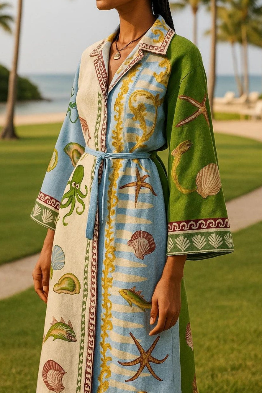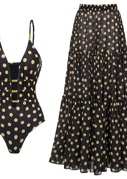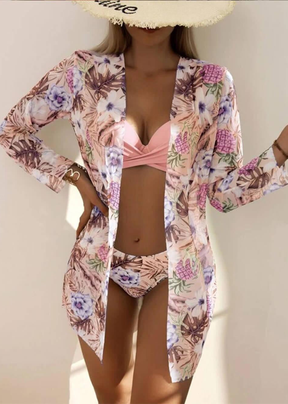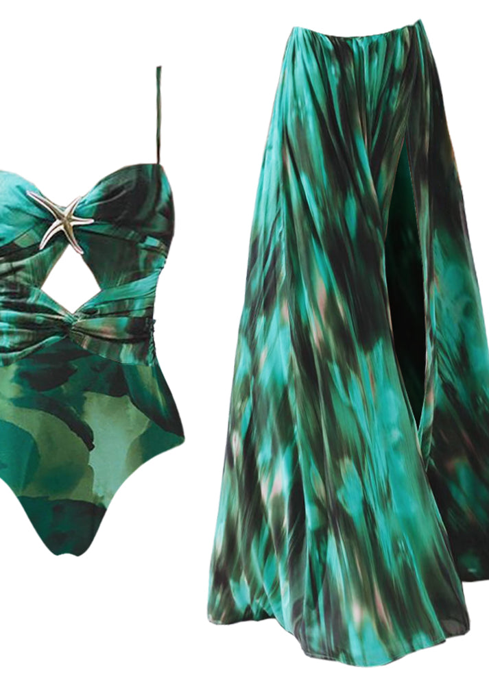 Long-sleeved Tie-Drawstring Shirt and Skirt Set