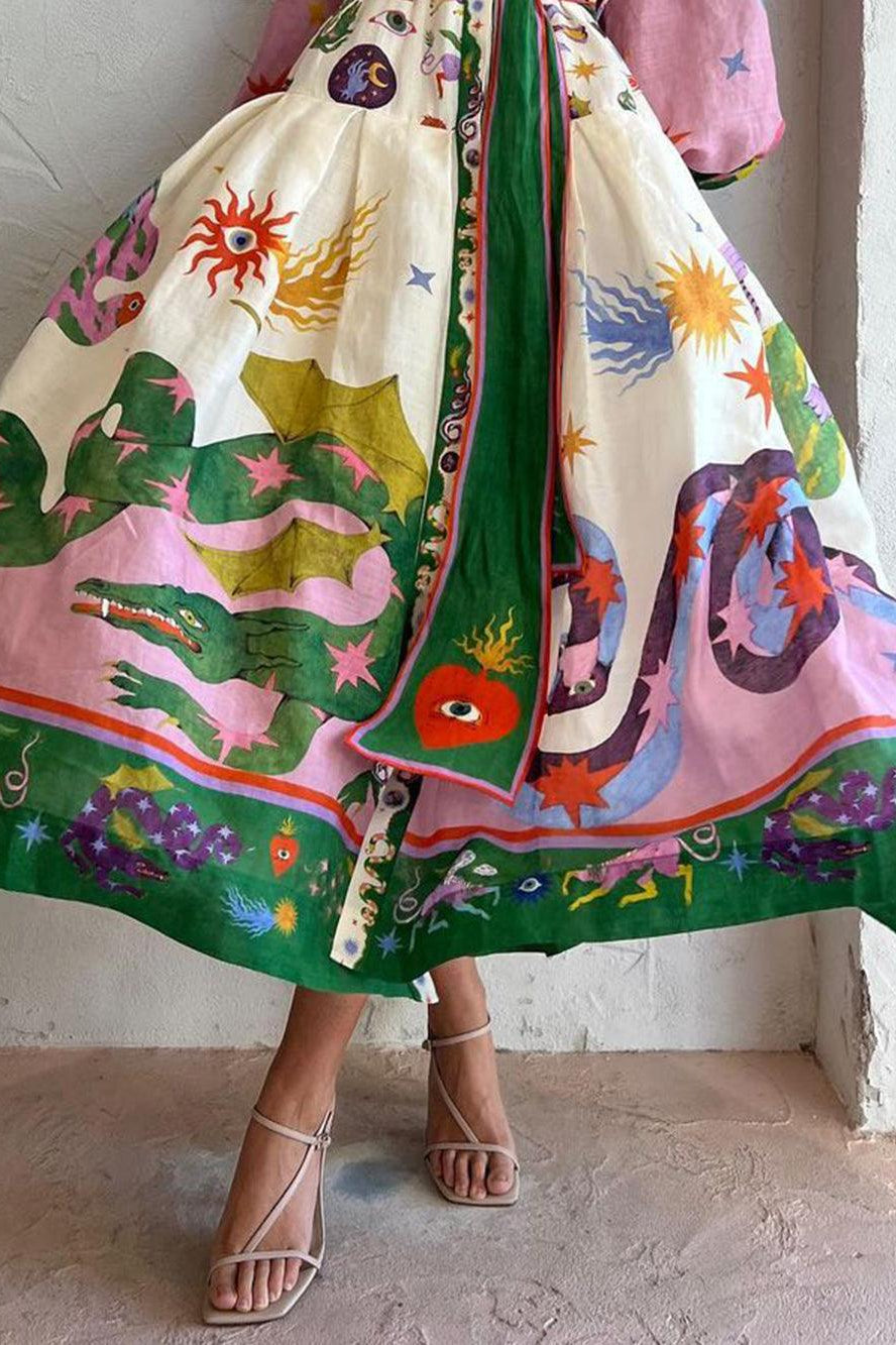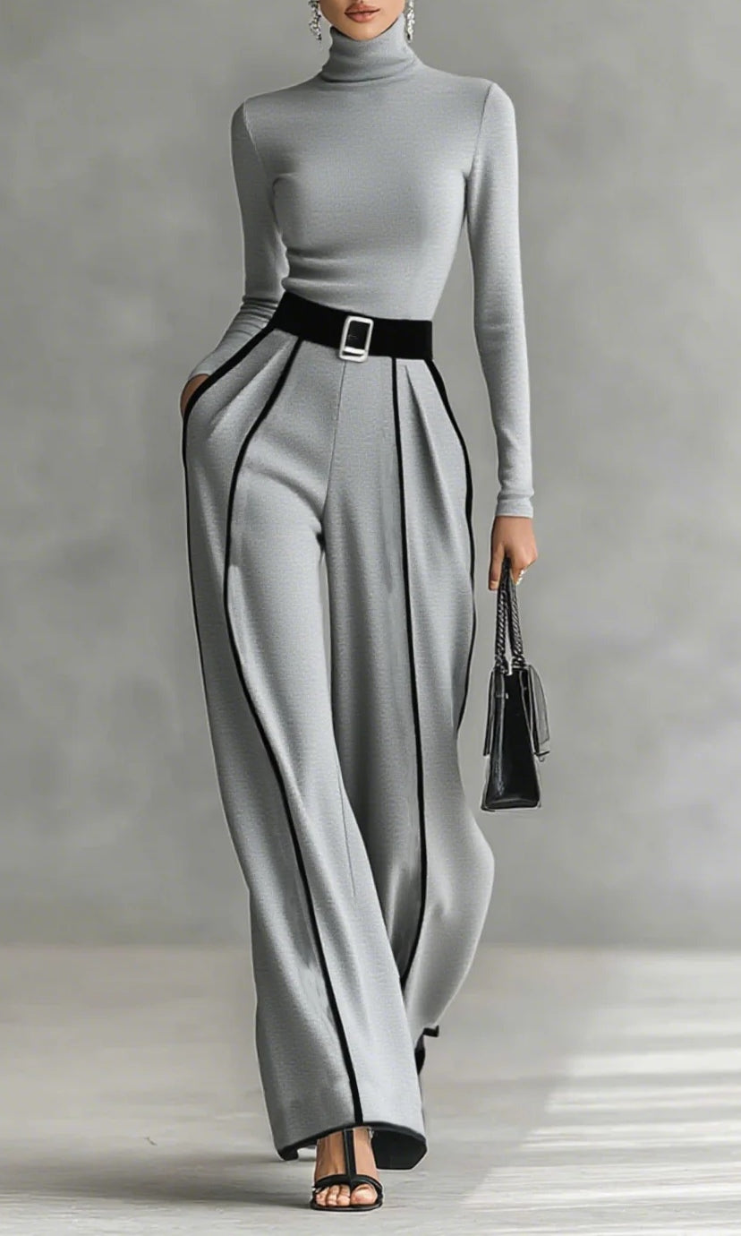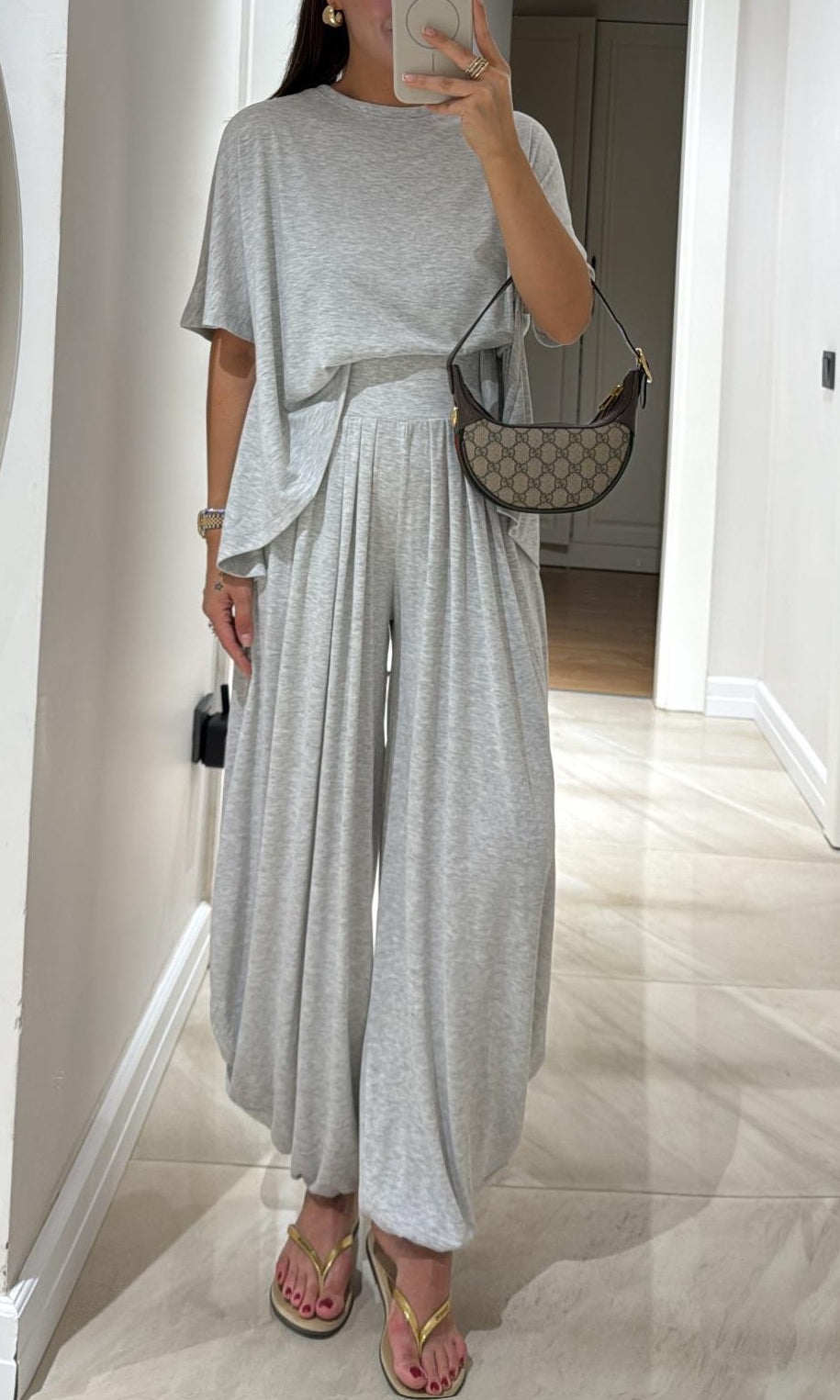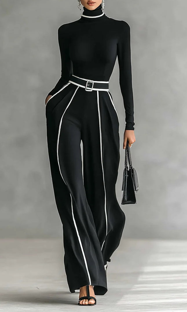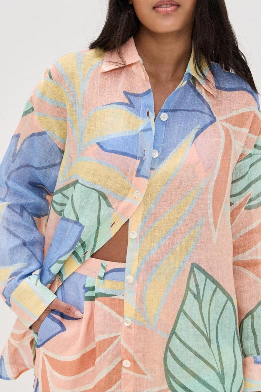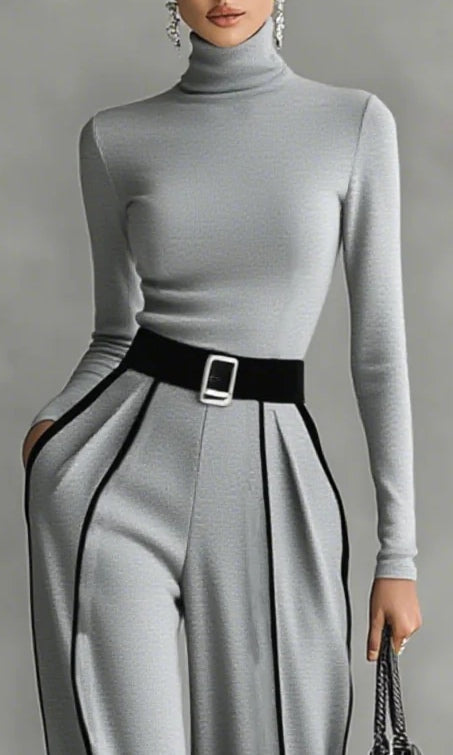 Long-sleeved Tie-Drawstring Shirt and Skirt Set