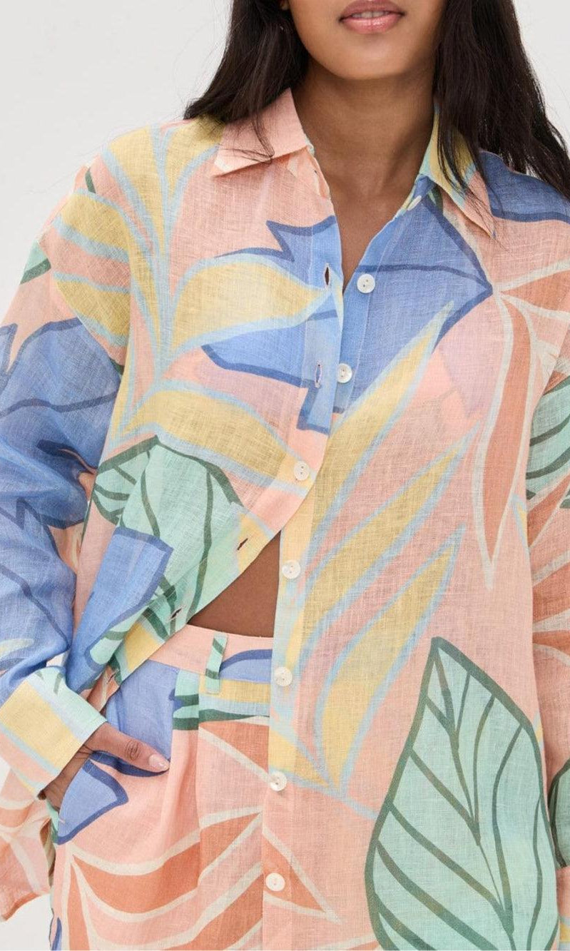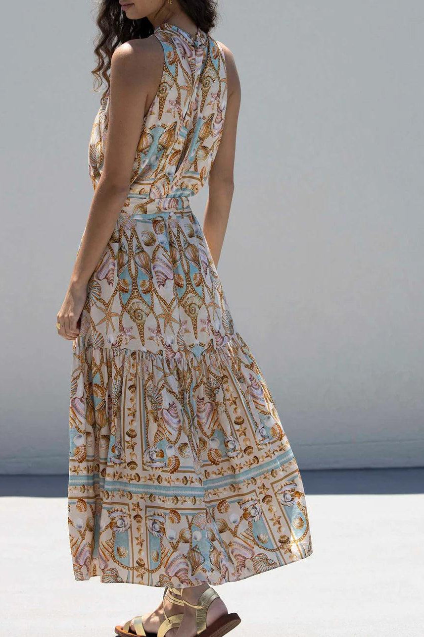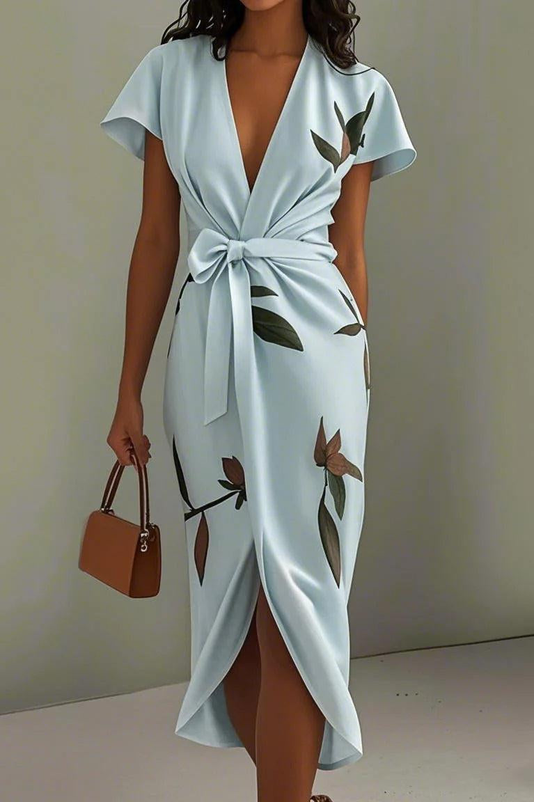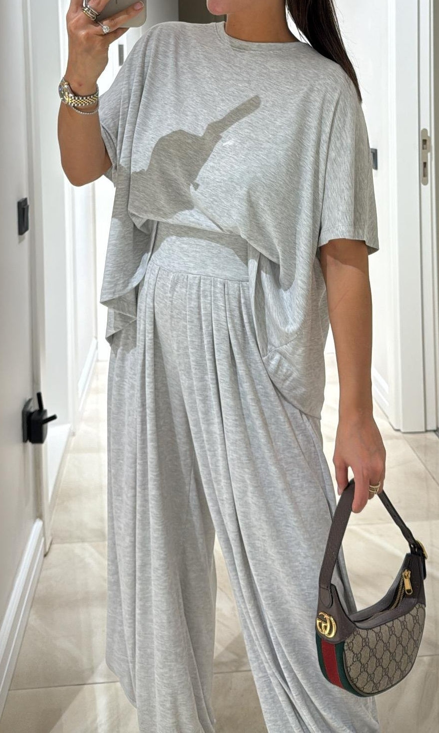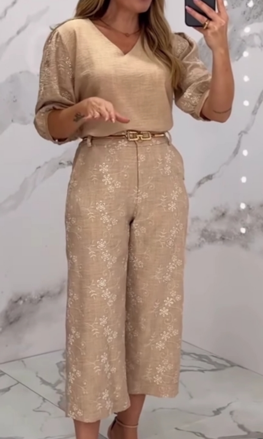 Long-sleeved Tie-Drawstring Shirt and Skirt Set