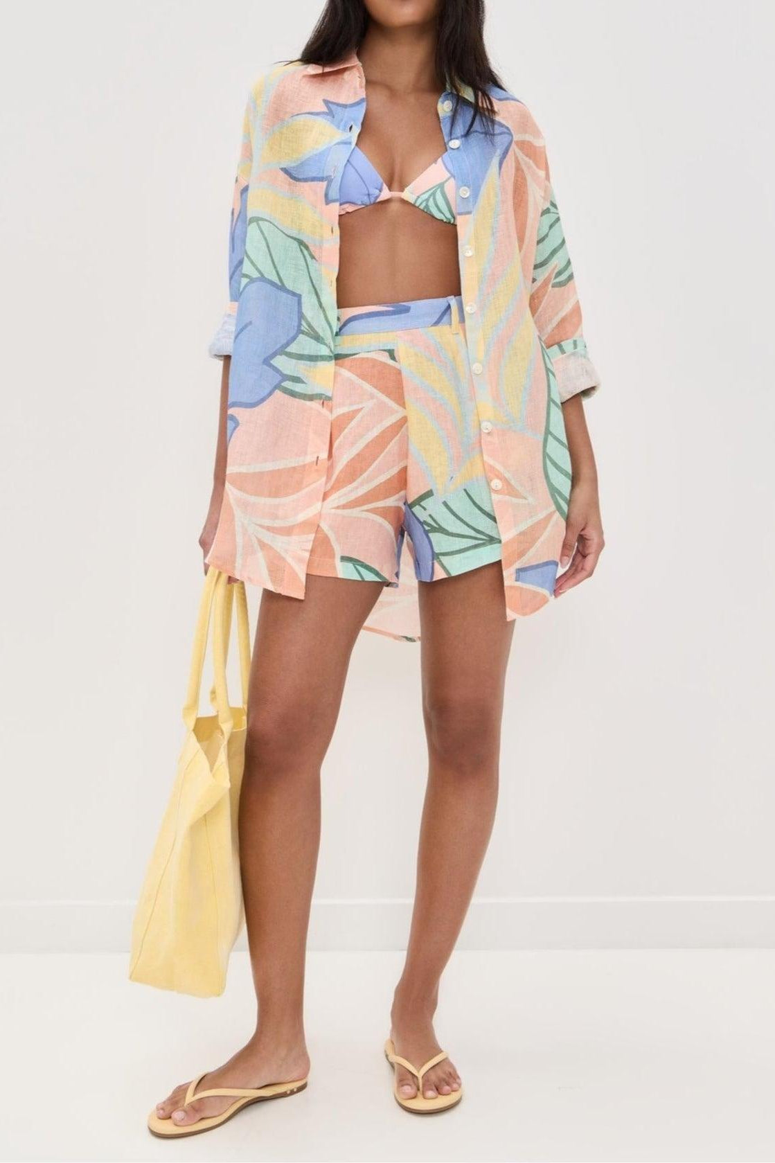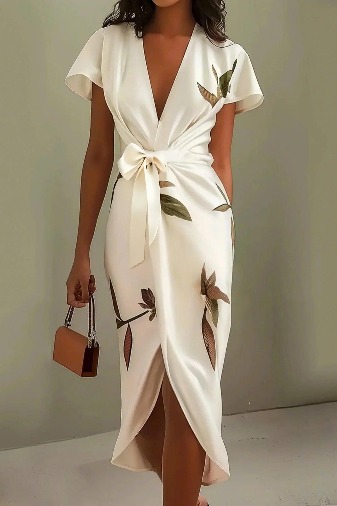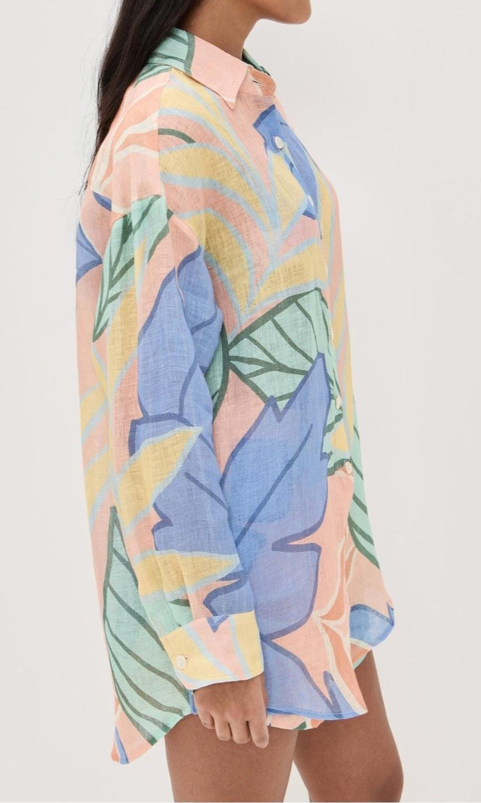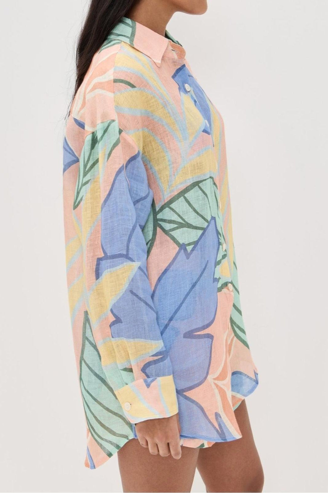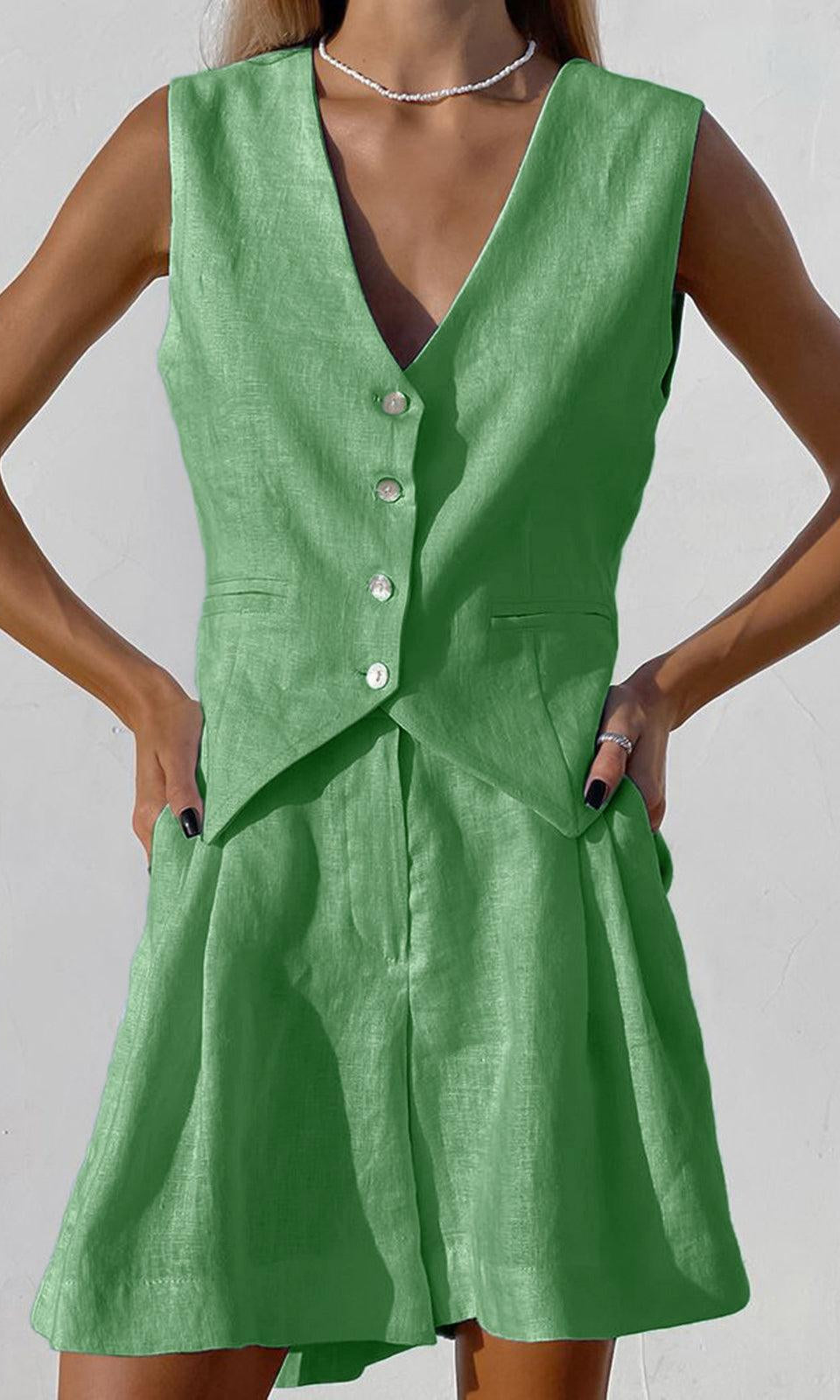 Long-sleeved Tie-Drawstring Shirt and Skirt Set