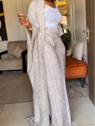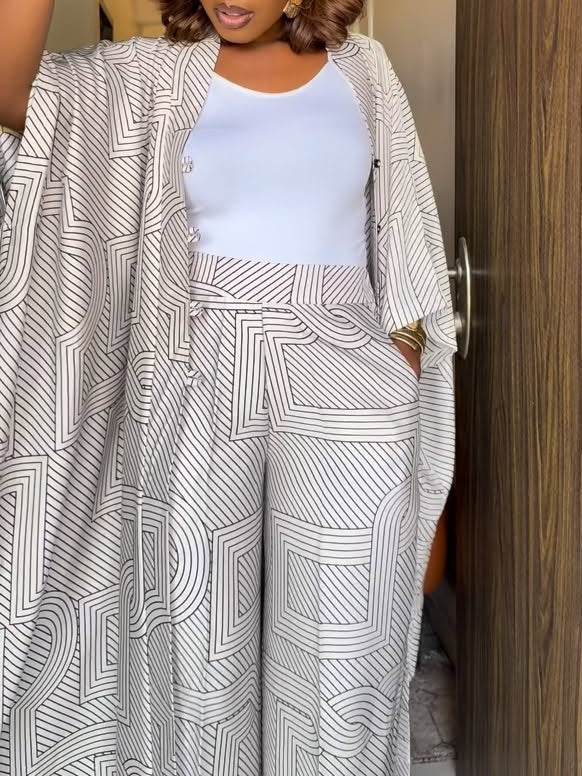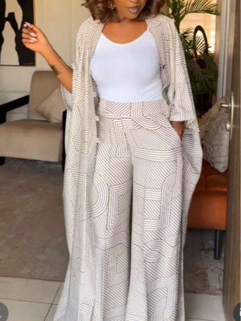 Striped Rectangular Print Cardigan & Trousers Two-Piece Set