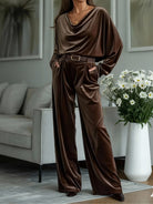 Coffee velvet turtleneck top and trousers set (including belt)