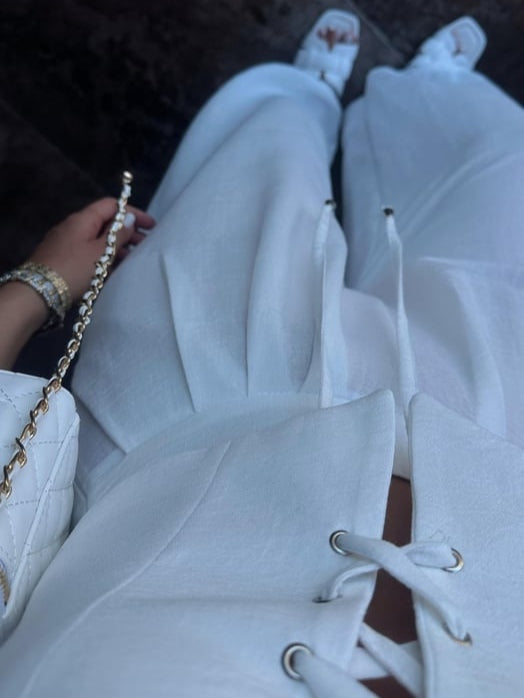 Black an White Contrast Cotton and Linen Shirt and Shorts Two-piece Set