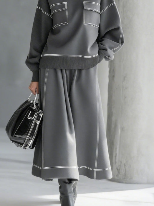 Minimalist Charcoal Gray Sweatshirt And Skirt Two-piece Set