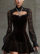 1. Material: This exquisite dress is crafted from rich velvet, exuding elegance and sophistication. Lace embellishments add a touch of refinement, perfectly blending elegance with a hint of allure.