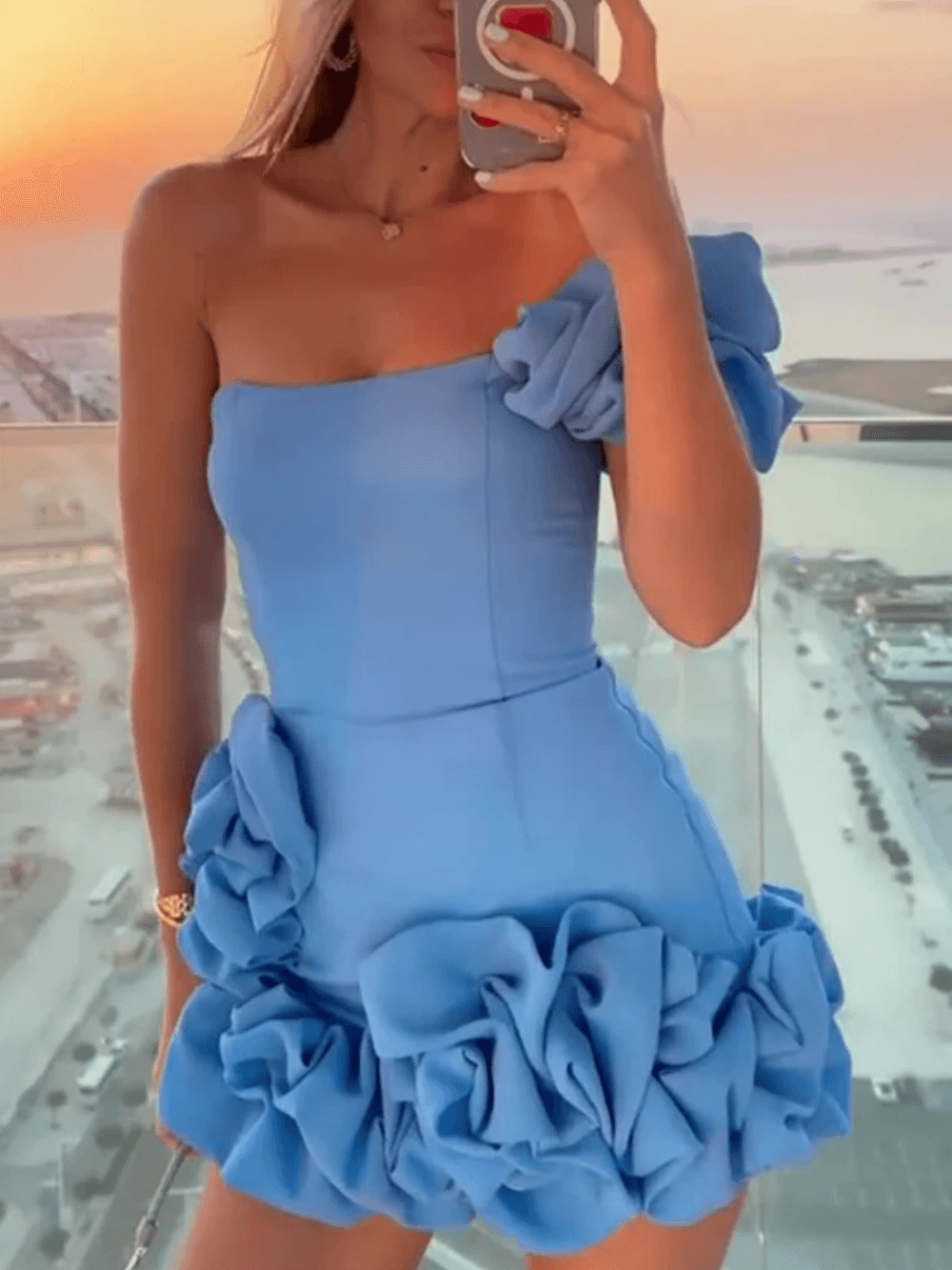 Ruffled flower bud waist dress one-shoulder tube top hip skirt