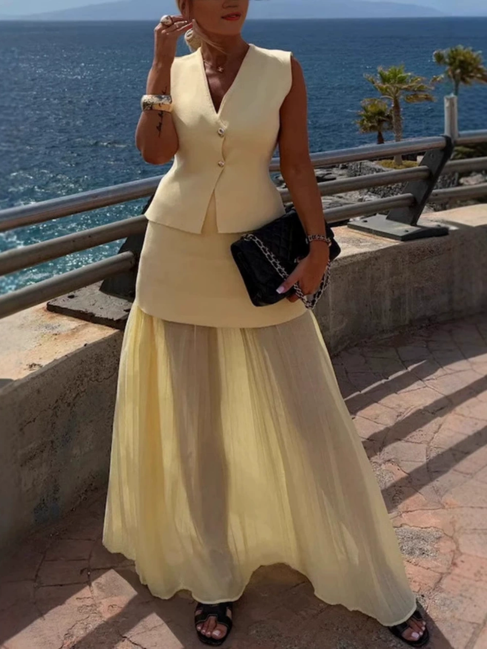 Casual Patchwork Double-Breasted Blazer & Pants Two-Piece Set