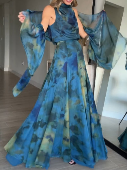 Tie-Dye Print Chiffon Tank Top & Skirt Set (Includes Tie-Strap Fabric Panel)