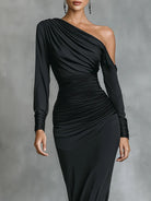Black Elegant Satin One - Shoulder Ruched Mermaid Maxi Dress