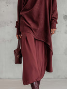 Burgundy Faux Suede One Shoulder Maxi Dress With Asymmetric Hem