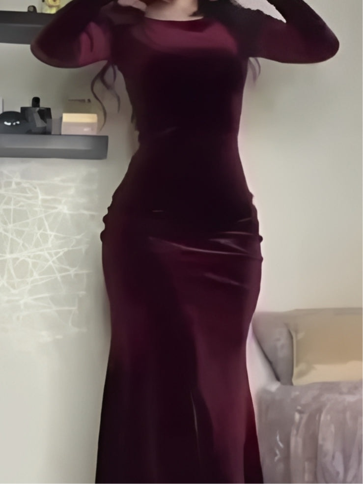 Style: Slim-fitting long dress, exuding timeless Western charm.
