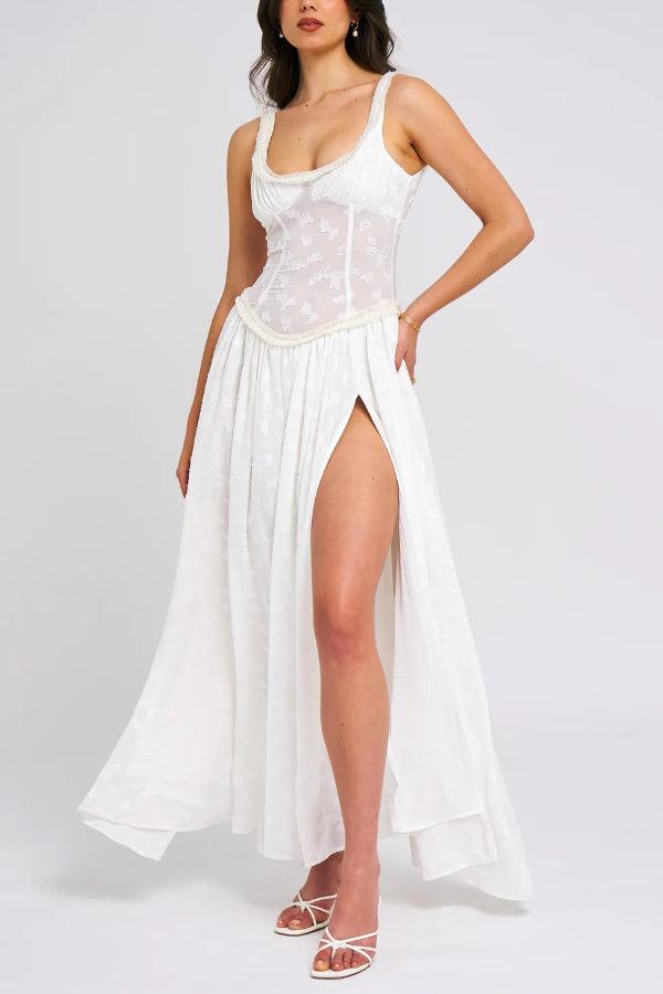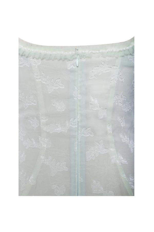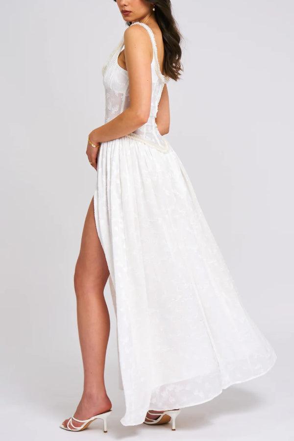 Light Green Square Neck Jacquard Textured High Slit Maxi Dress
