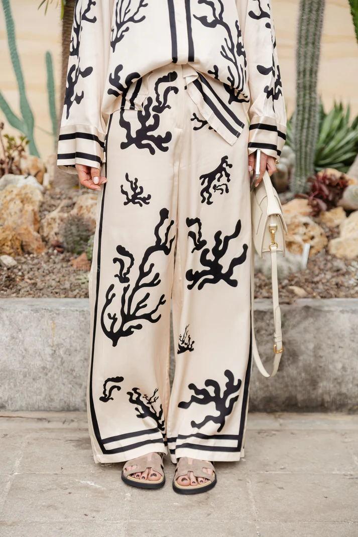 Ocean Print Oversized Shirt and Elastic Waist Pocket Pants Set