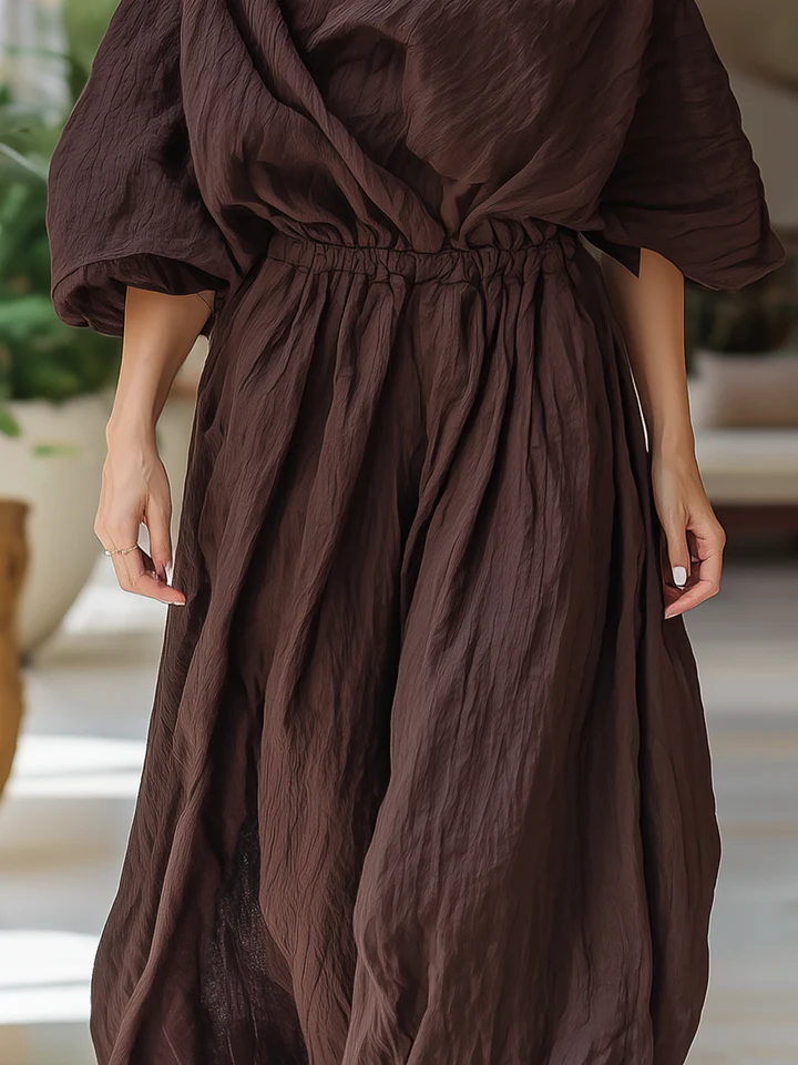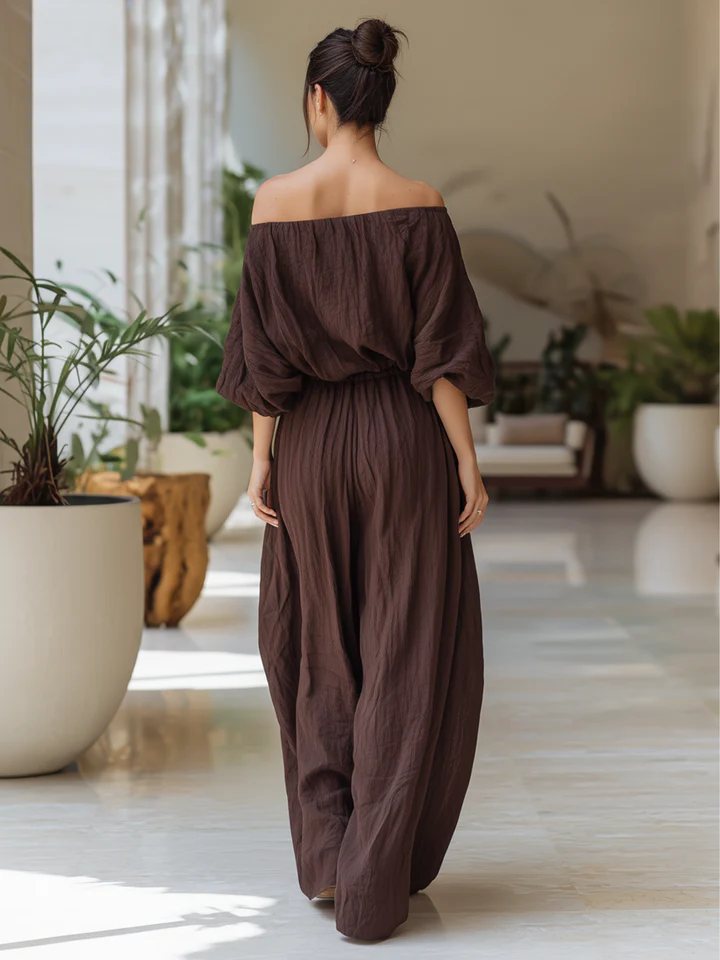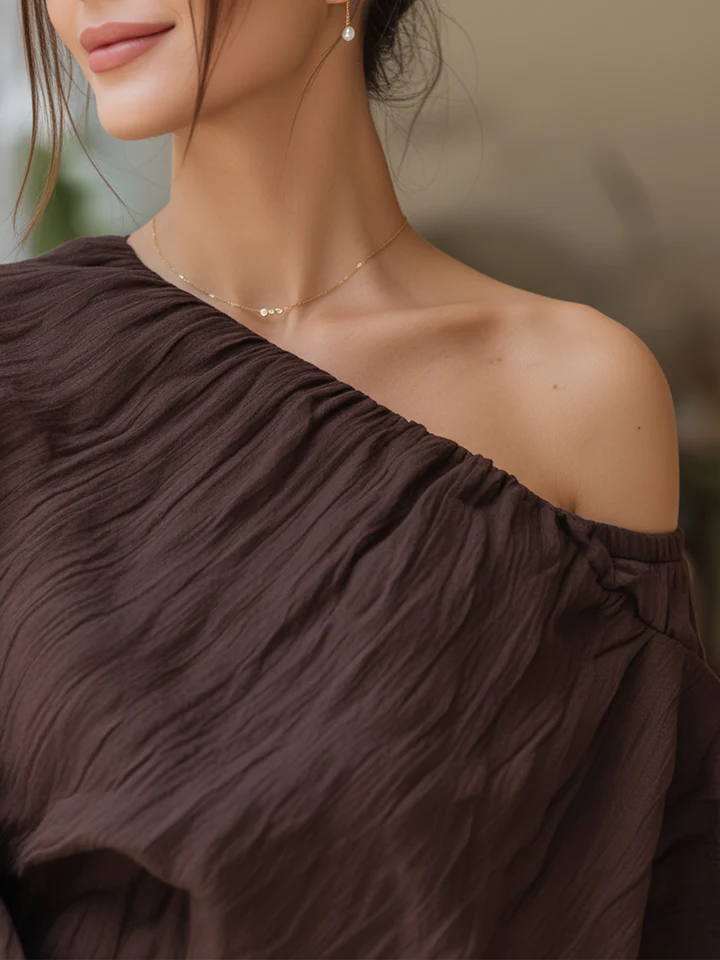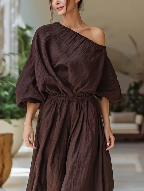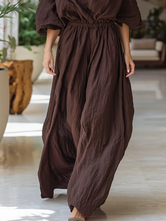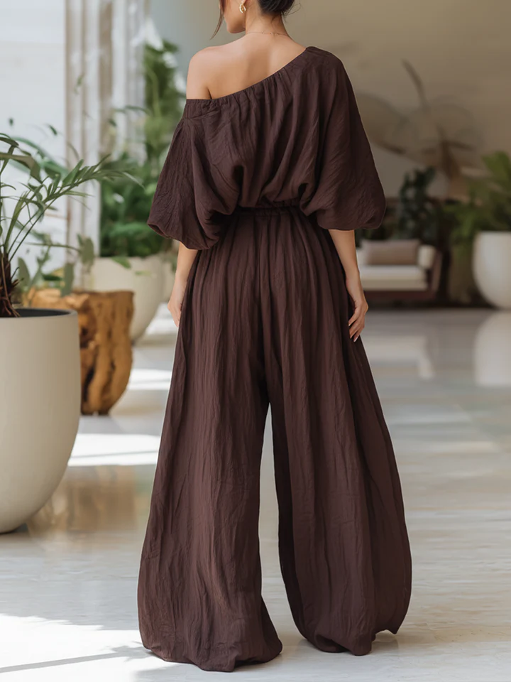 Chocolate Brown Ruched One-Shoulder Wide-Leg Jumpsuit