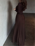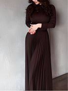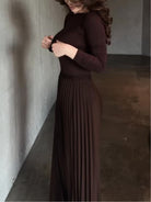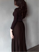 Brown long-sleeved top and pleated skirt set