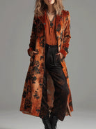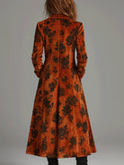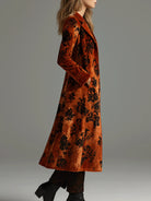 This vintage-style burnt orange velvet floral long coat exudes timeless elegance. It cleverly blends retro charm with modern fashion to create an eye-catching look that will make you the center of attention.