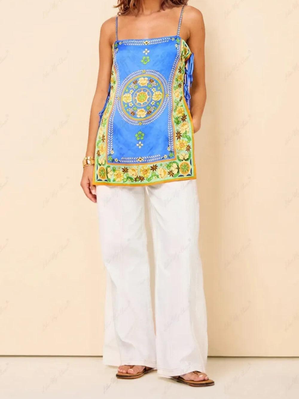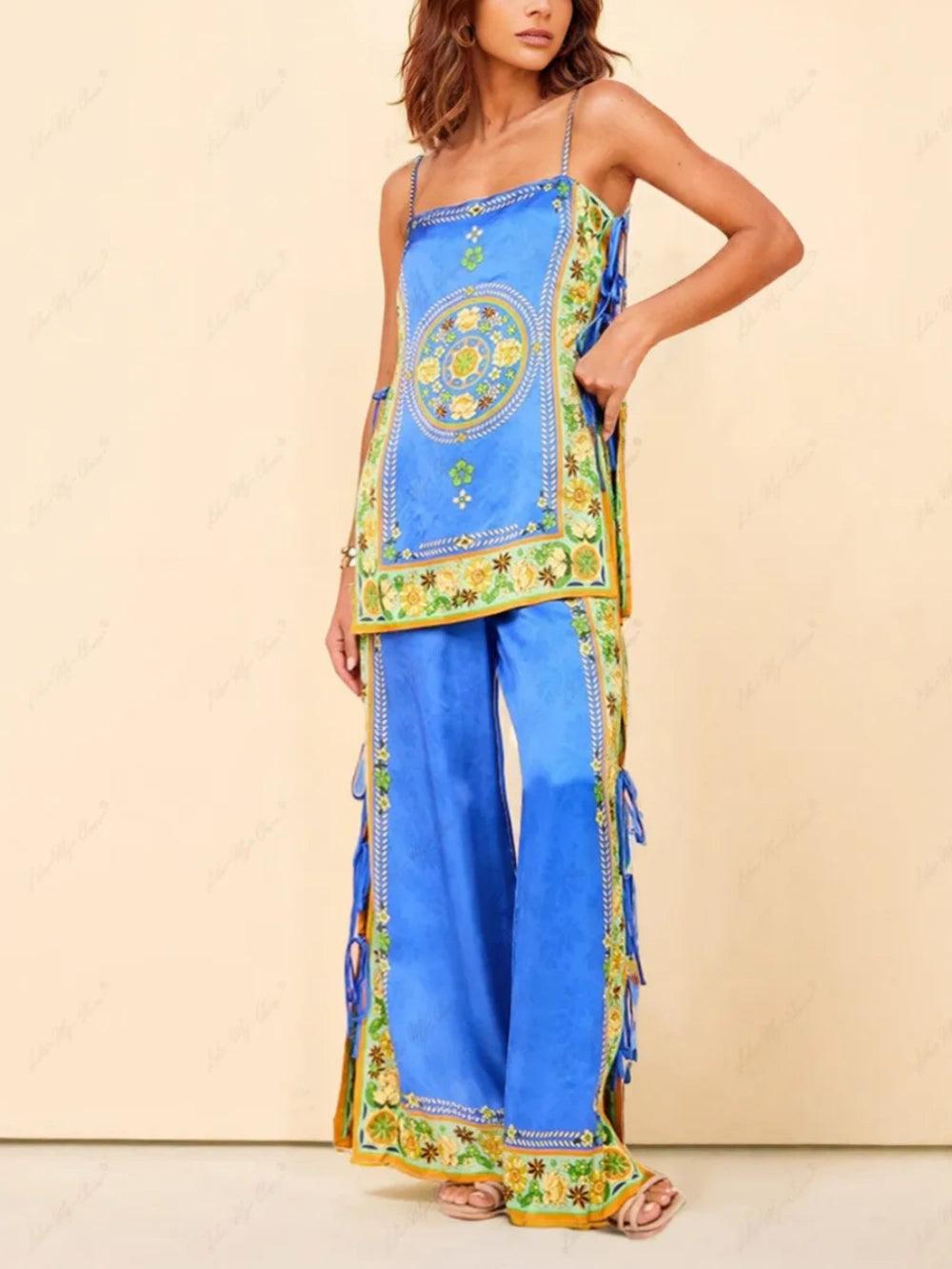 Loose Sun Lounger Printed Shirt Shorts Set