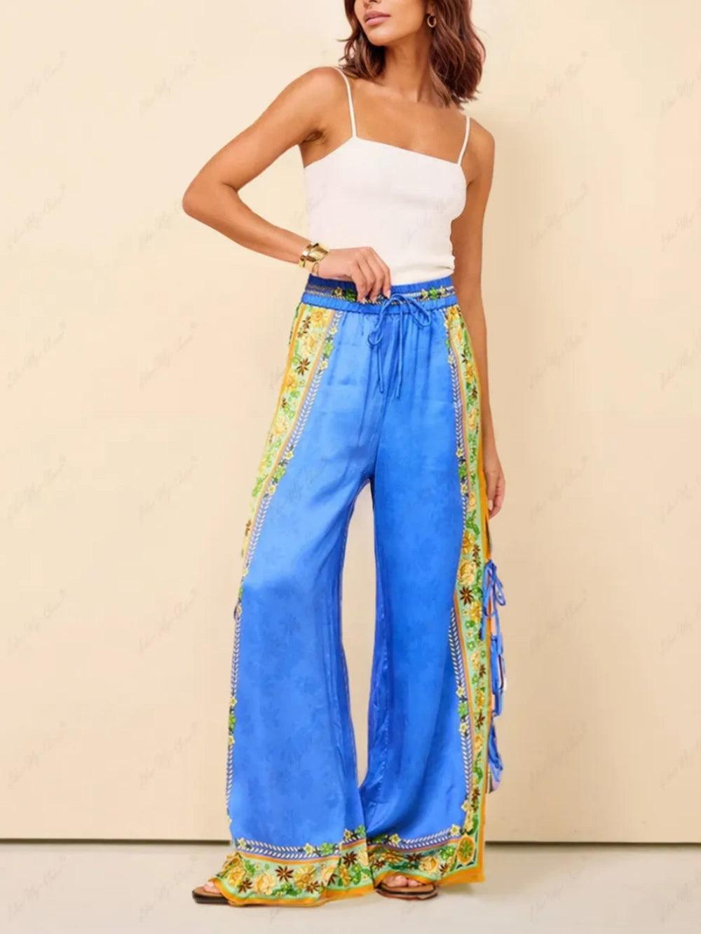 Linen Irregular Loose V-neck Top and High-Waisted Pocket Wide-leg Pants Set