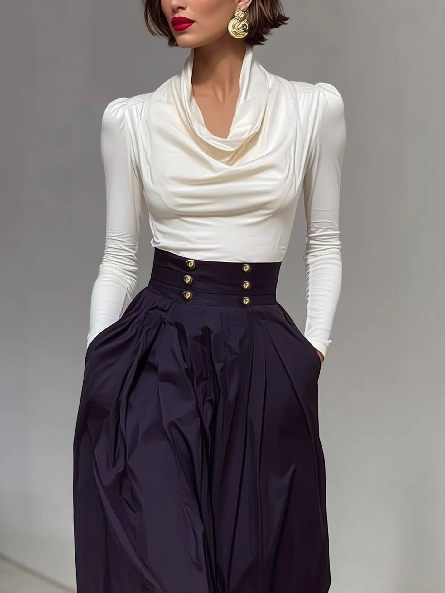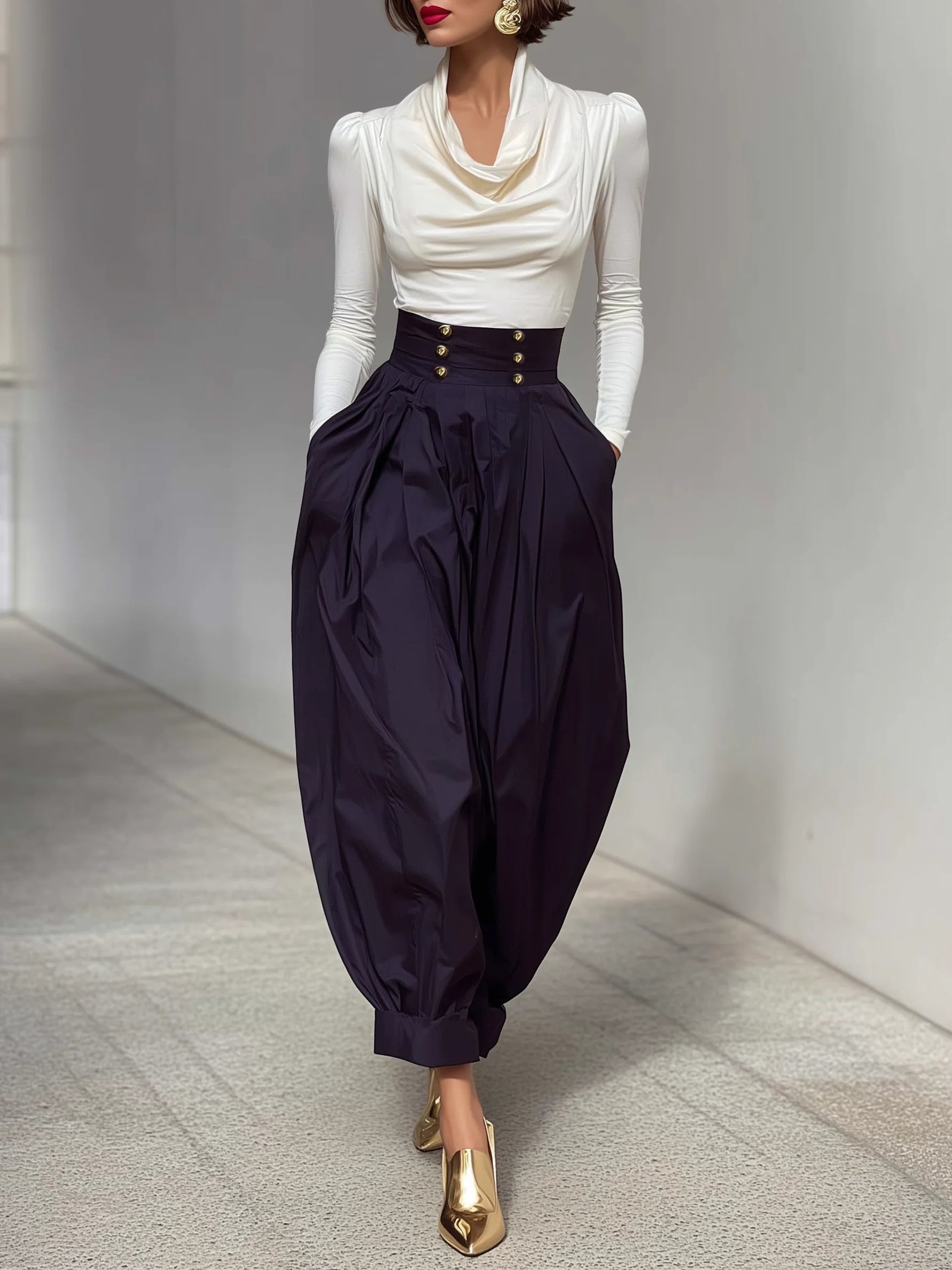 Minimalist Cowl Neck T-shirt And Harem Pants Set