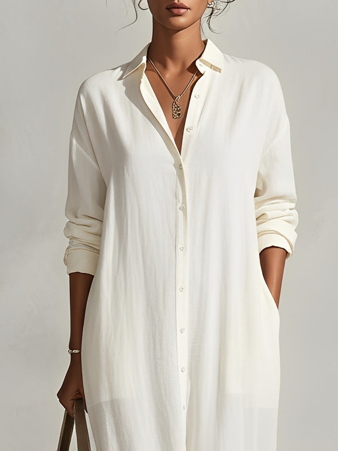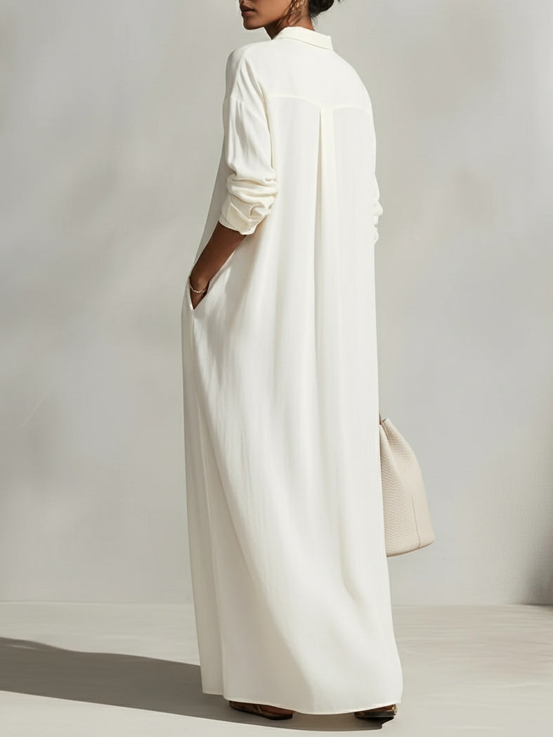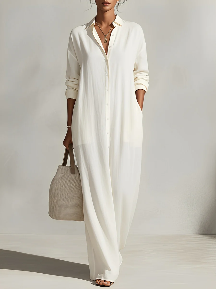 Cream Button-down Shirt Maxi Dress