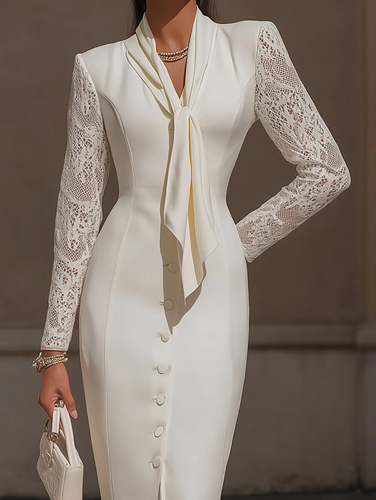 Elegant Plain Shirt Collar Knee Length Dress With Belt