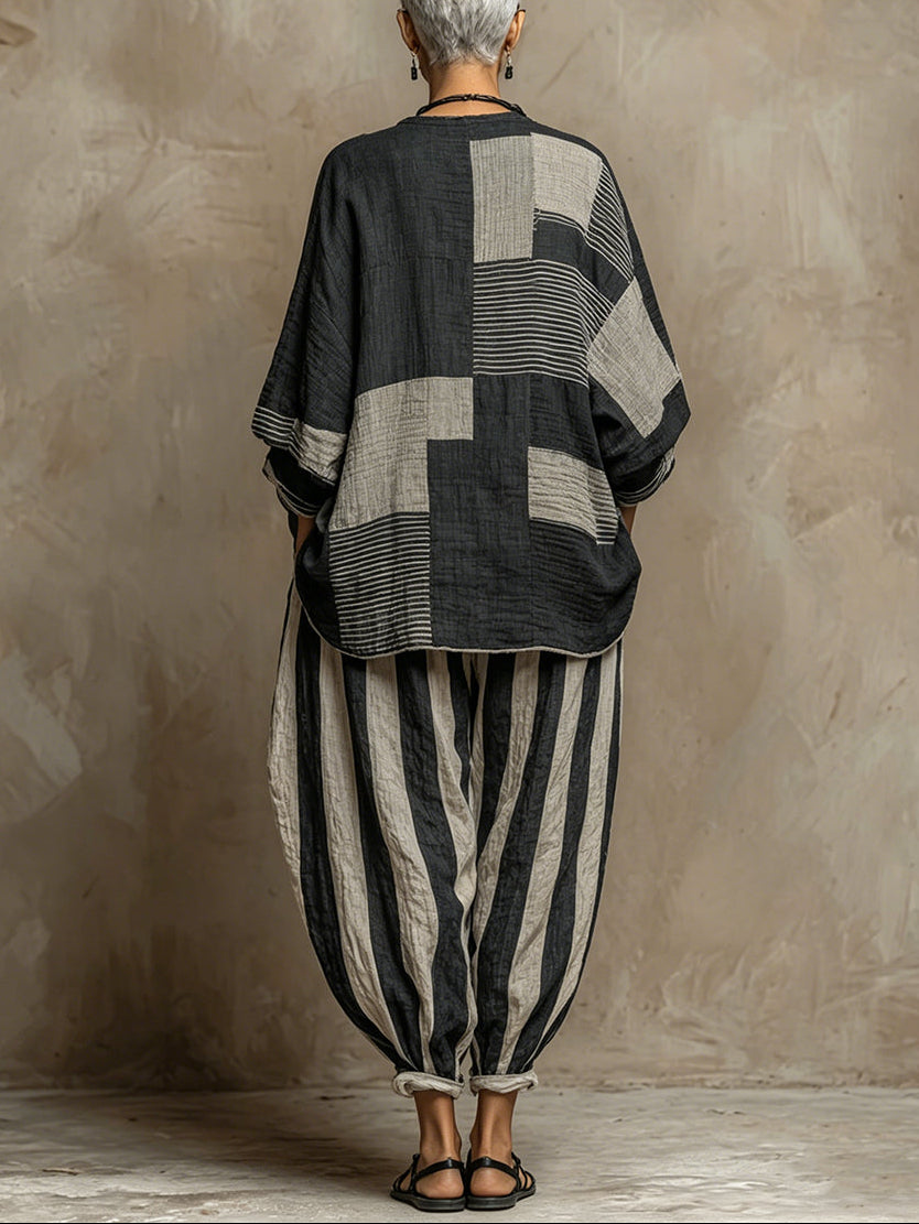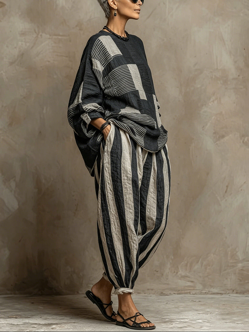 Casual Color-Block Printed Long-Sleeve Top And Pants Set