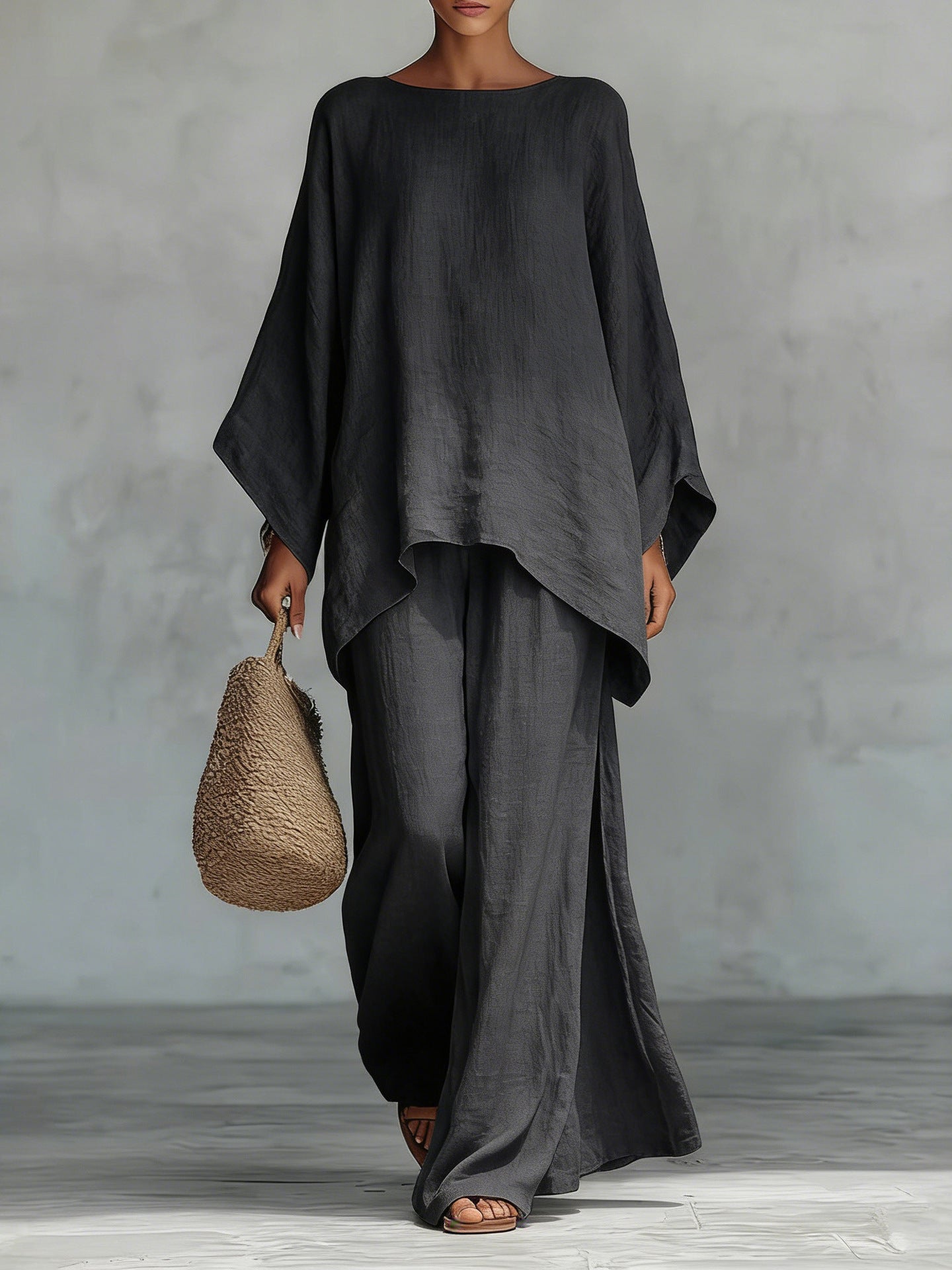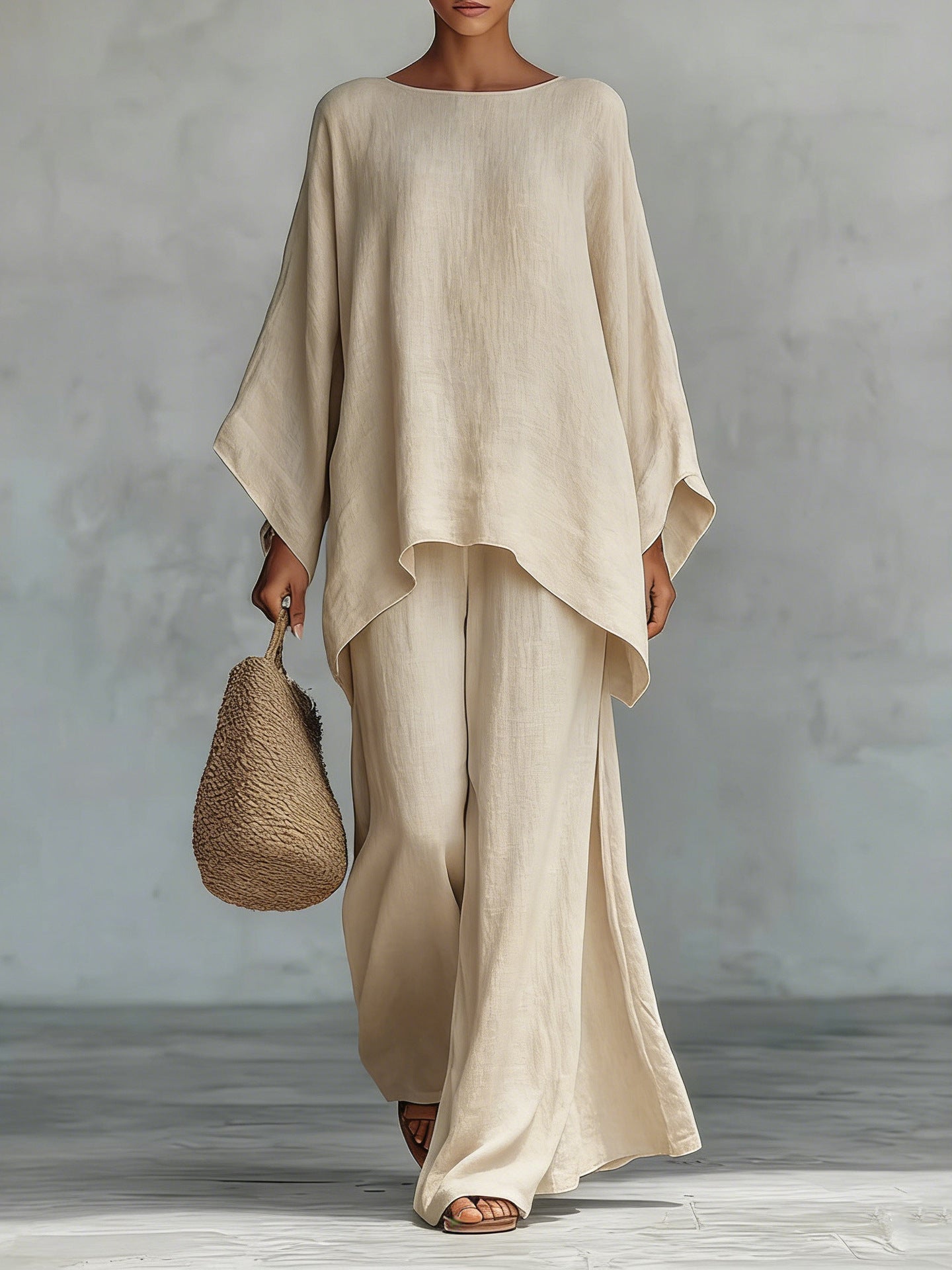 Minimalist Faux Linen Blend Flowy Top And Pants Two-piece Set